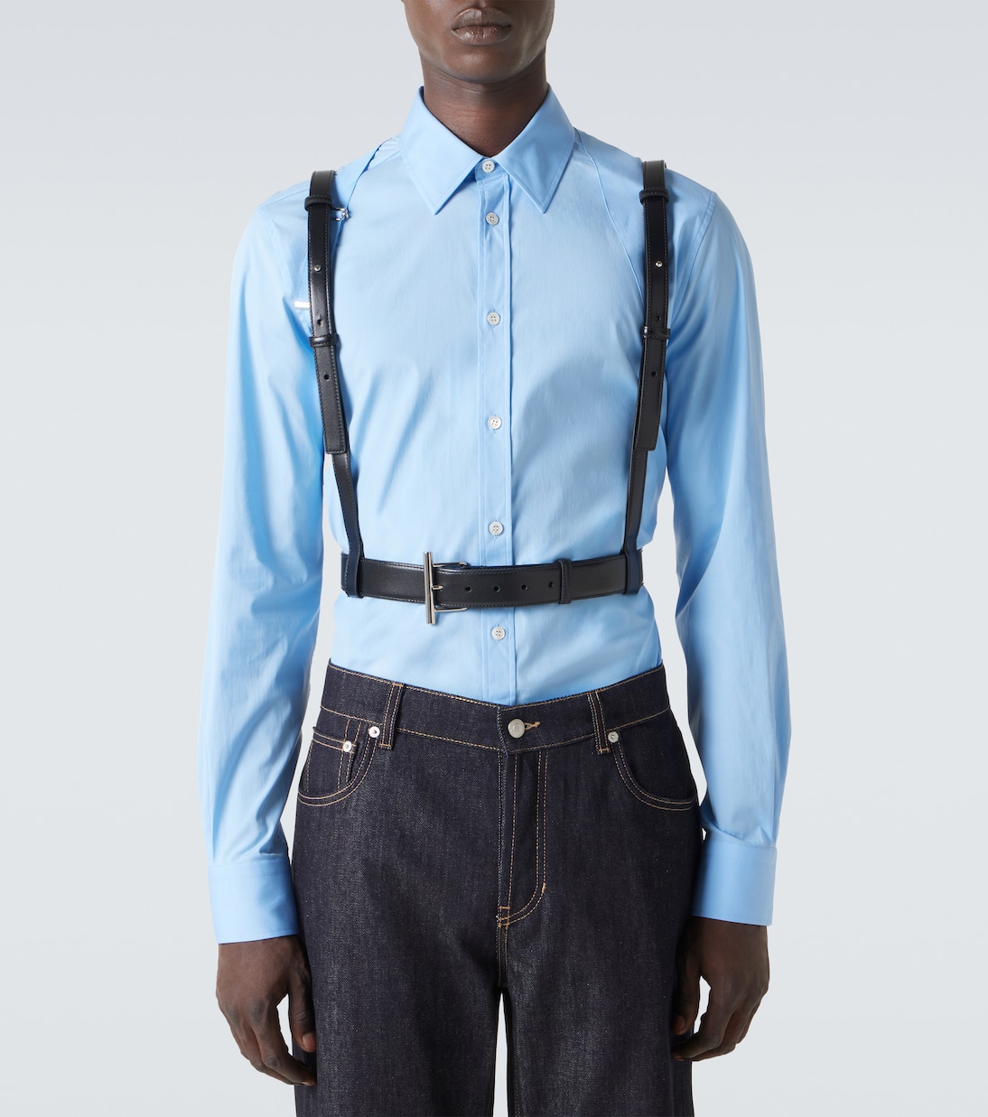 McQueen переосмысливает свою фирменную деталь Harness, создавая ремень, который можно носить как с повседневными, так и с деловыми образами. Ремень выполнен из мягкой кожи и дополнен серебристой пряжкой T-Bar.