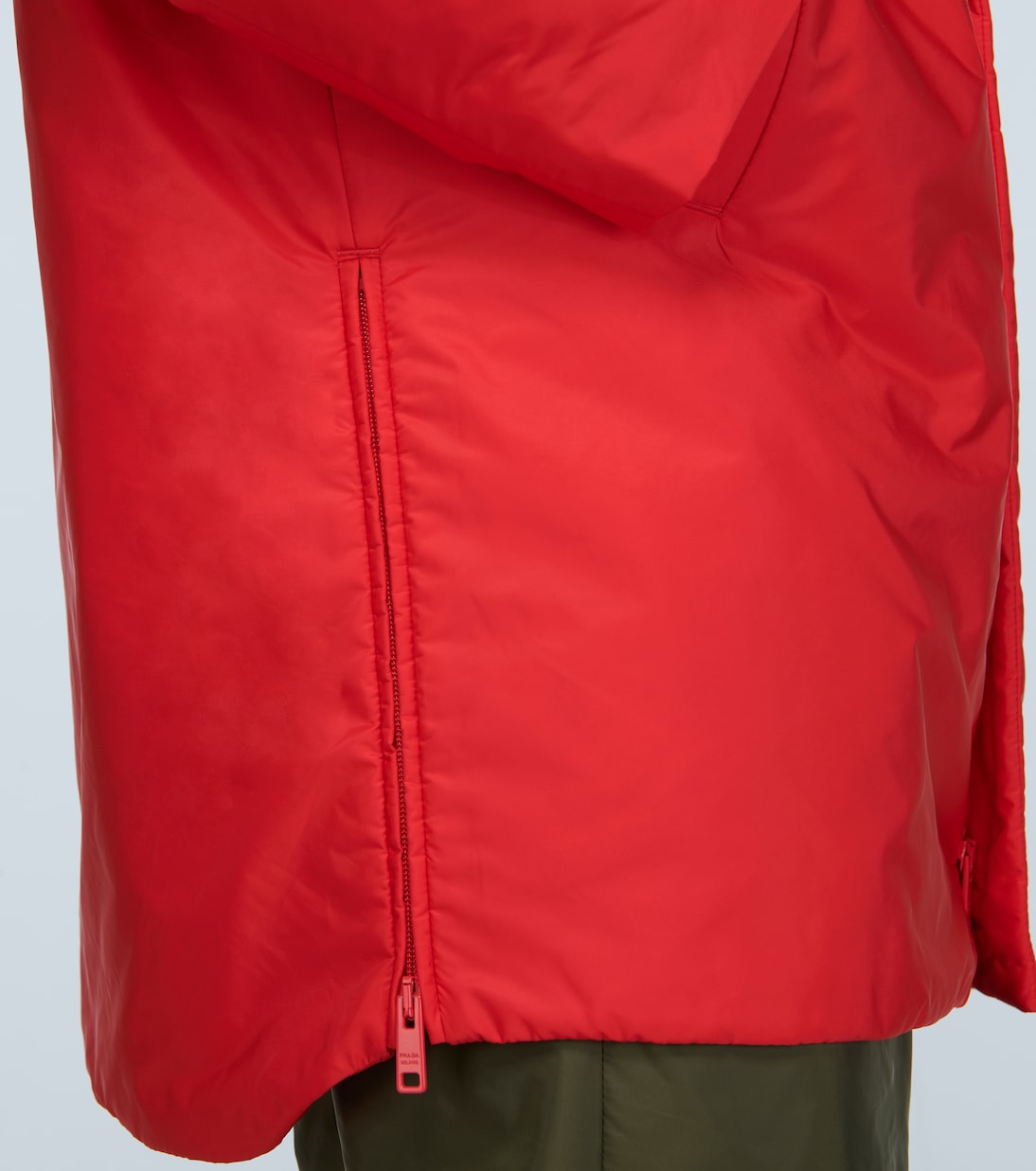 Эта красная техническая куртка, изготовленная в Италии, входит в эксклюзивную капсульную коллекцию Prada x Mytheresa Men. Она имеет воротник-стойку, потайную молнию спереди и эластичные манжеты, а также дополнена логотипом бренда из черной резины на спине.