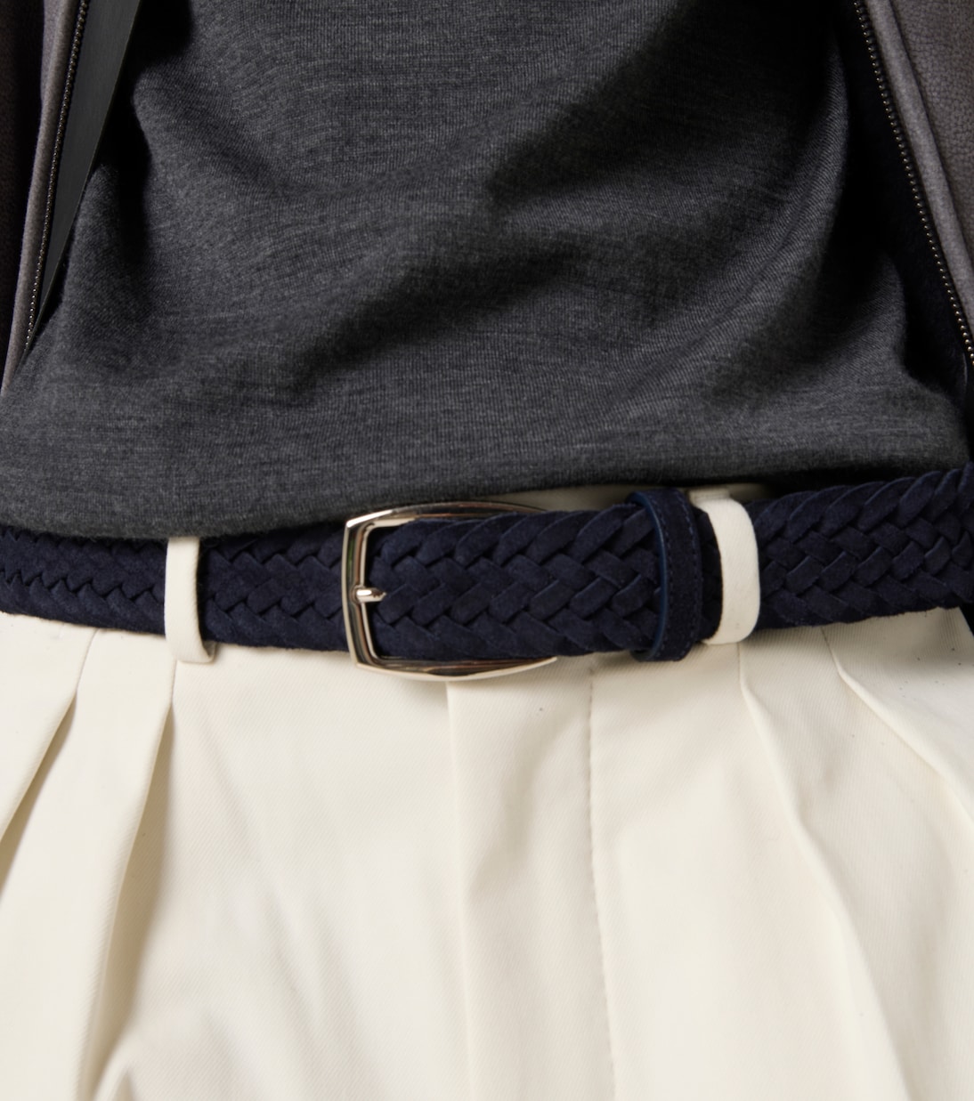 Плетёный пояс из замши Brioni, Midnight Blue 64 630₽