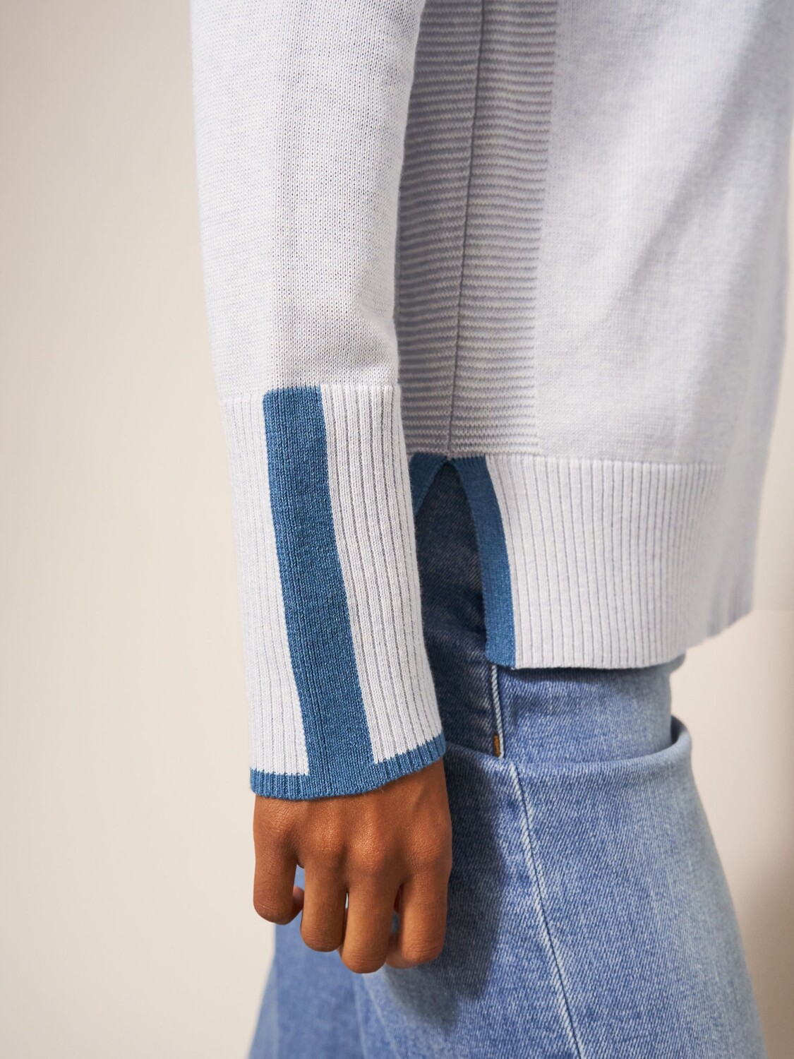 Оливковый джемпер с разрезом по бокам White Stuff, светло-серый