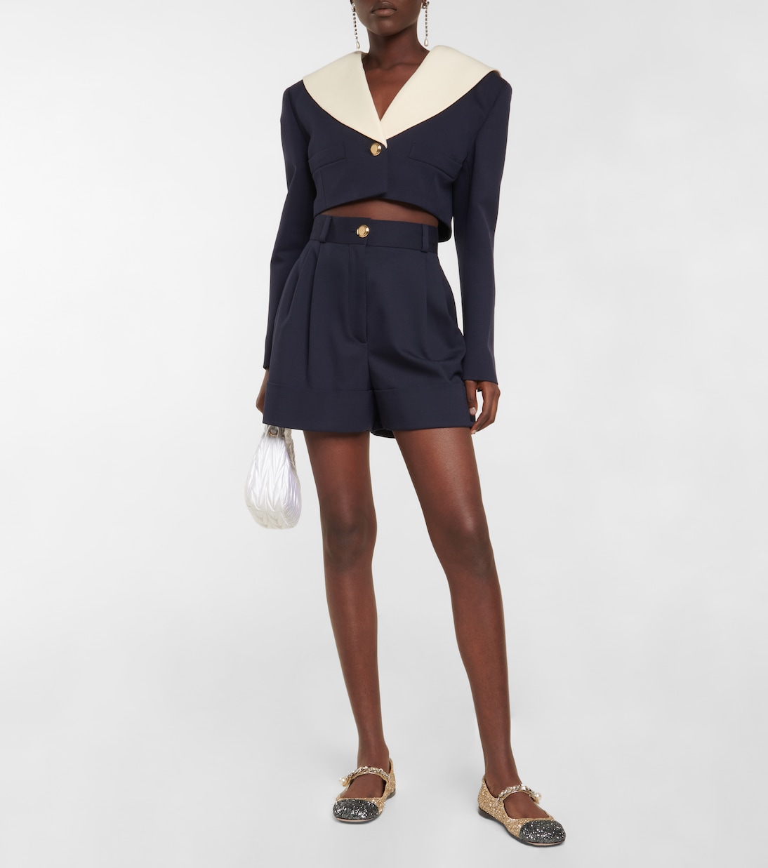 Miu Miu сочетает балетки с элементами дизайна Мэри Джейн, создавая эту сверкающую пару. Туфли выполнены из блестящей ткани с серебристыми цепочками на ремешках и имеют низкий каблук для комфорта в течение всего дня.