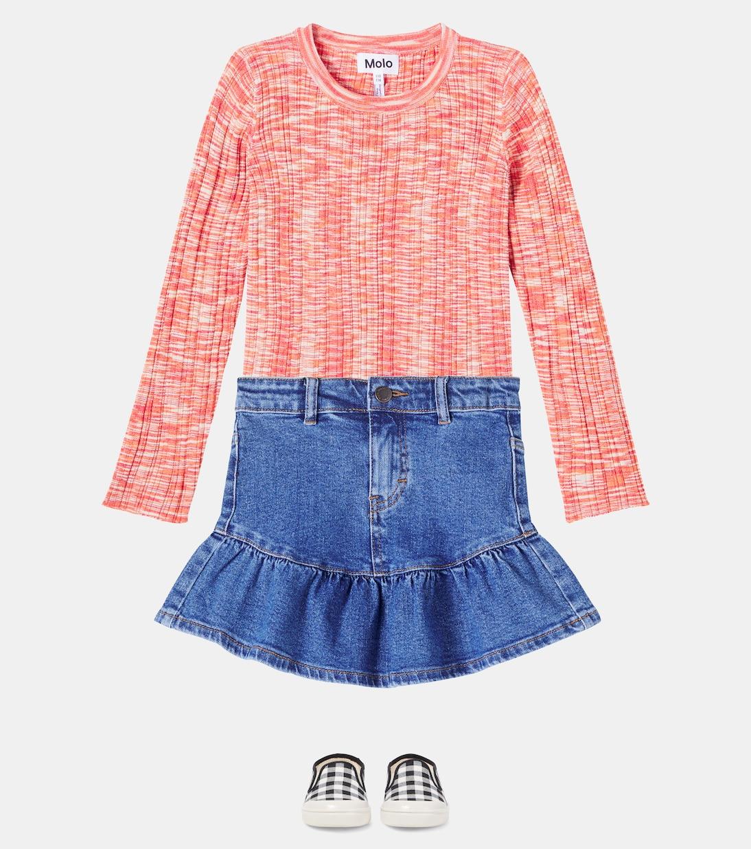 Molo создаёт миниатюрные модели для больших приключений, например, свитер Gabriella. Эта яркая модель мулине выполнена из лёгкой резинки и имеет классический круглый вырез горловины.