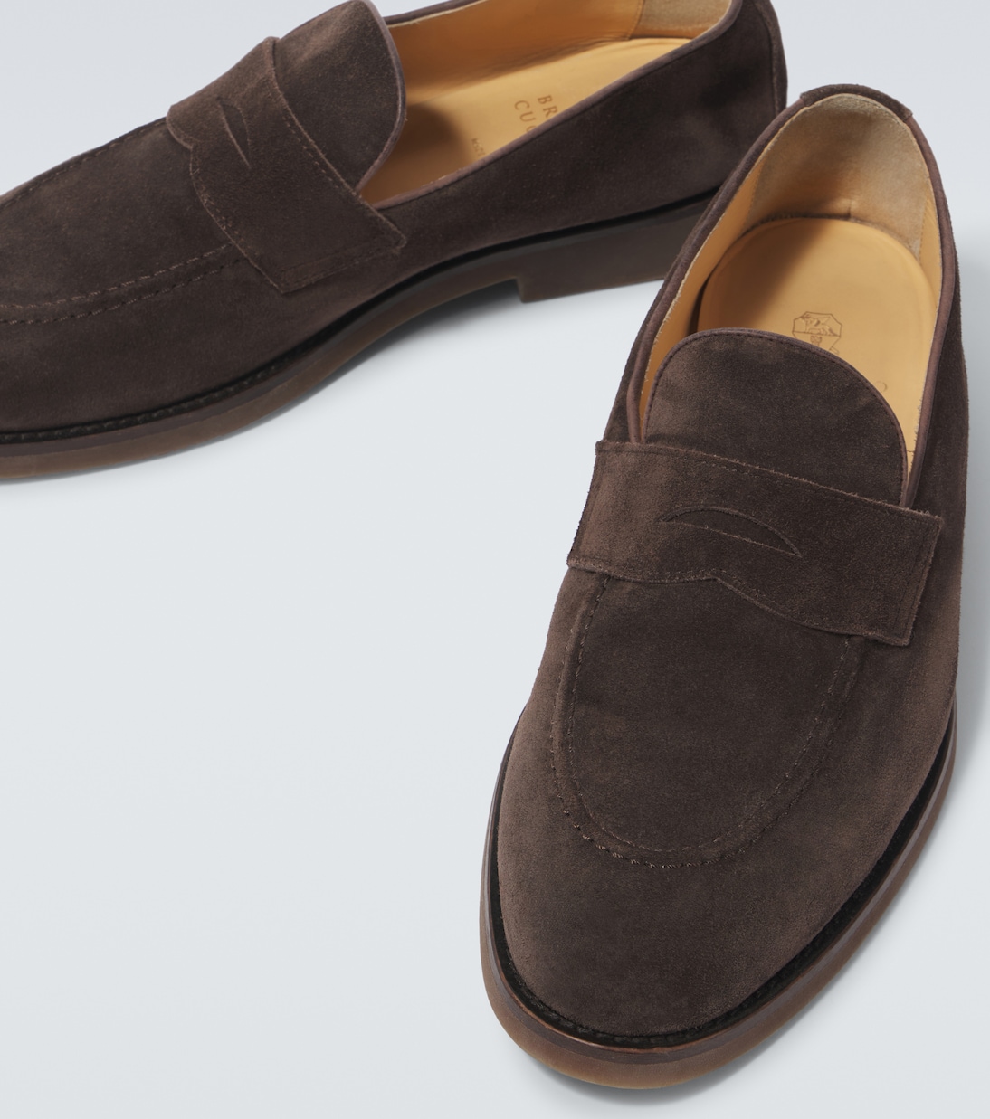 Модели Brunello Cucinelli создаются в Соломео, средневековой деревушке, где искусство и традиции вплетены в каждую нить бренда. Эти классические пенни-лоферы из мягкой замши украшены строчками и отделкой в тон.