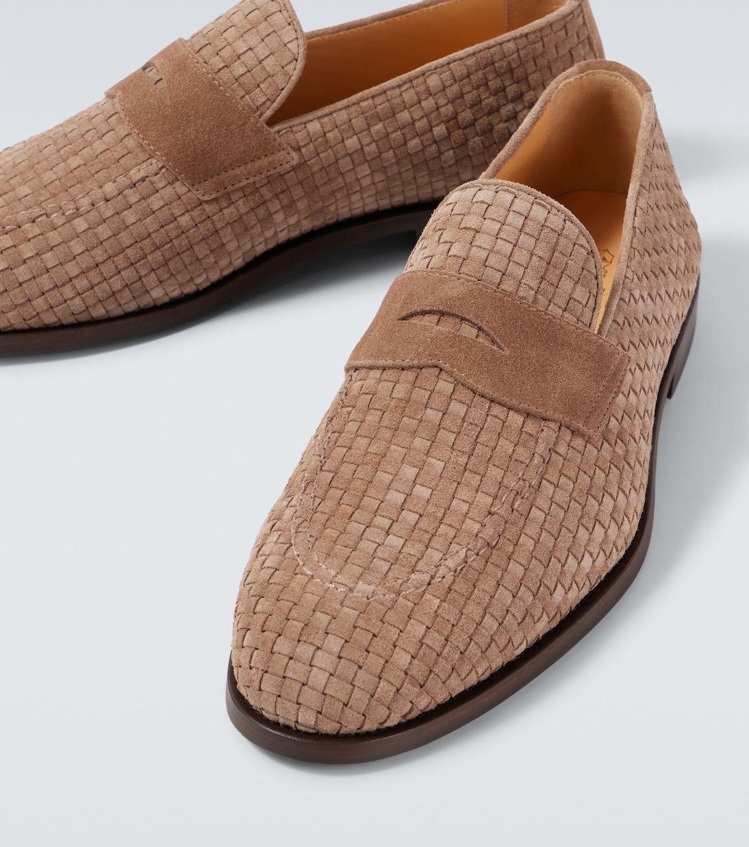 Модели Brunello Cucinelli создаются в Соломео, средневековой деревушке, где искусство и традиции вплетены в каждую нить бренда. Эти лоферы изготовлены из плетеной замши и дополнены ремешками на мыске.
