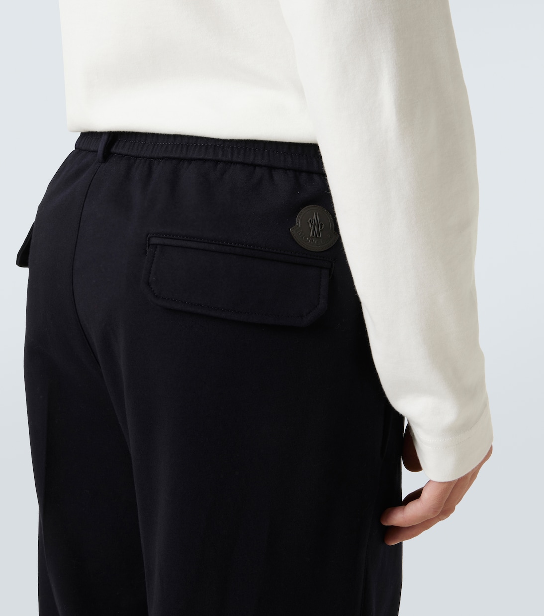Moncler предлагает идеальный баланс между формой и функциональностью для повседневной носки. Эти облегающие брюки из хлопковой смеси с одинарными складками и эластичным поясом на шнурке обеспечивают элегантную, но удобную посадку.