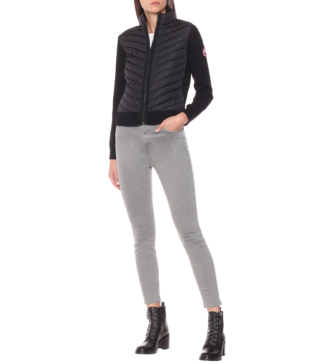 Эта куртка, представляющая собой отчасти уютный свитер, отчасти функциональный внешний слой, является частью функциональной коллекции HyBridge от Canada Goose. Приталенный черный фасон наполнен гусиным пухом и перьями на стеганом переде, а рукава и изнаночная сторона отделаны тонкой шерстью.