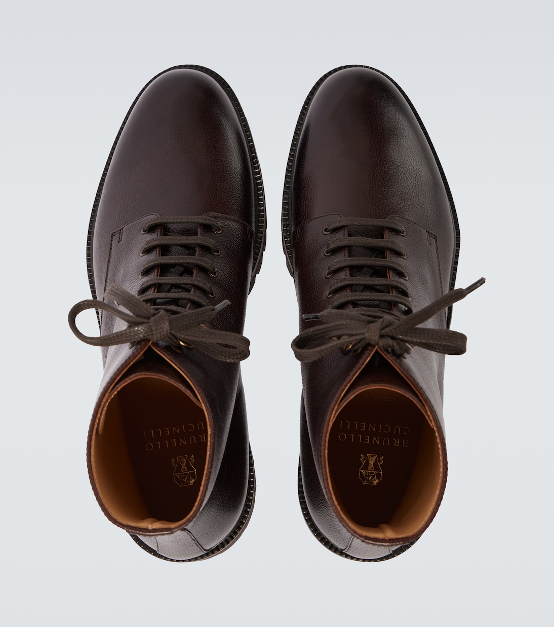 Модели Brunello Cucinelli создаются в Соломео, средневековой деревушке, где искусство и традиции вплетены в каждую нить дома. Эти ботинки на шнуровке искусно изготовлены из кожи и оснащены рифленой резиновой подошвой.