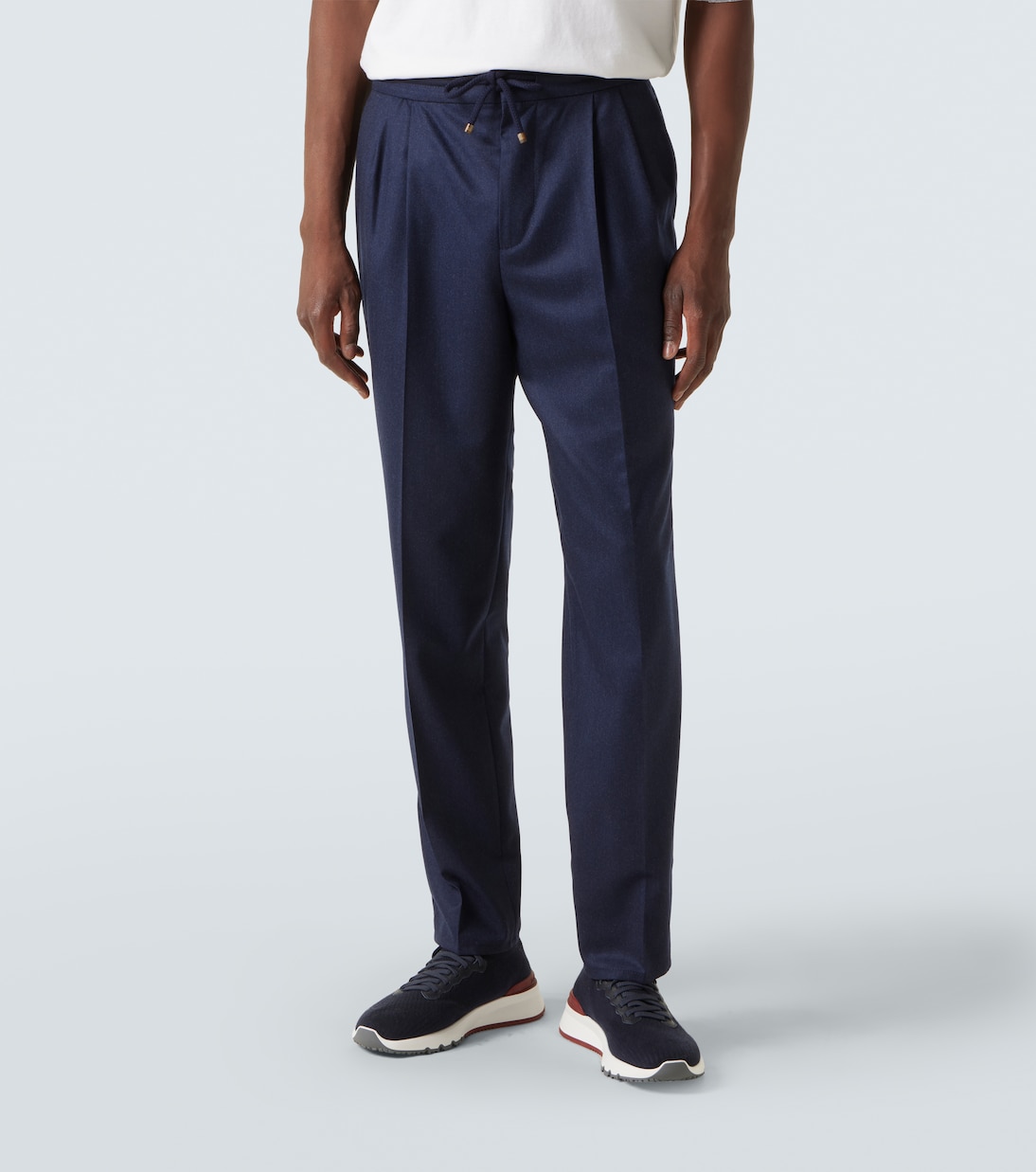 Модели Brunello Cucinelli создаются в Соломео, средневековой деревушке, чьё искусство и традиции вплетены в каждую нить дома. Эти прямые брюки, изготовленные в Италии из мягкой и лёгкой натуральной шерсти, дополнены завязками на талии.