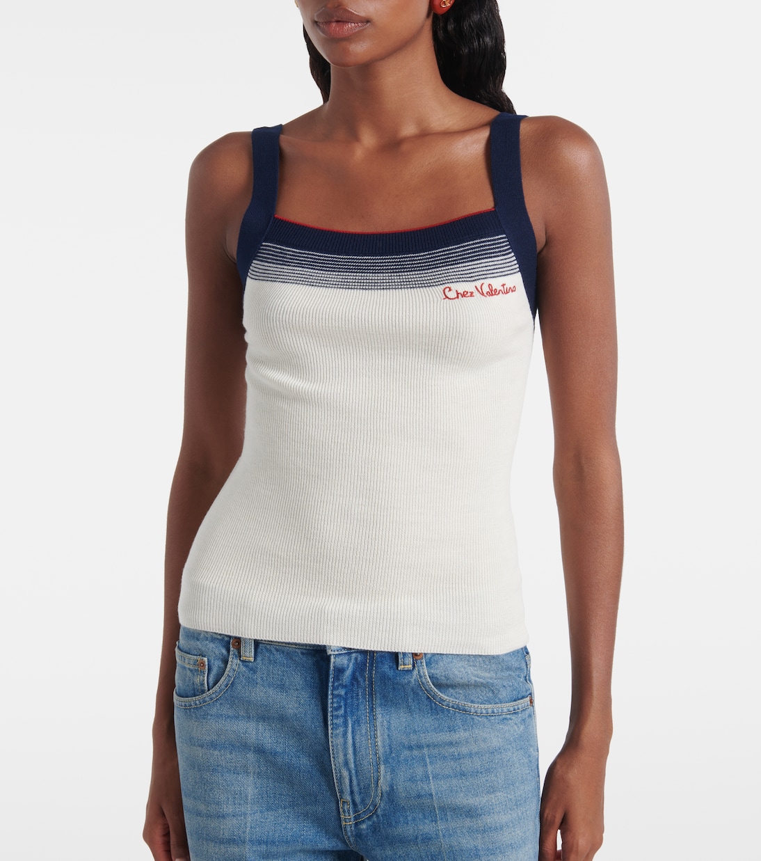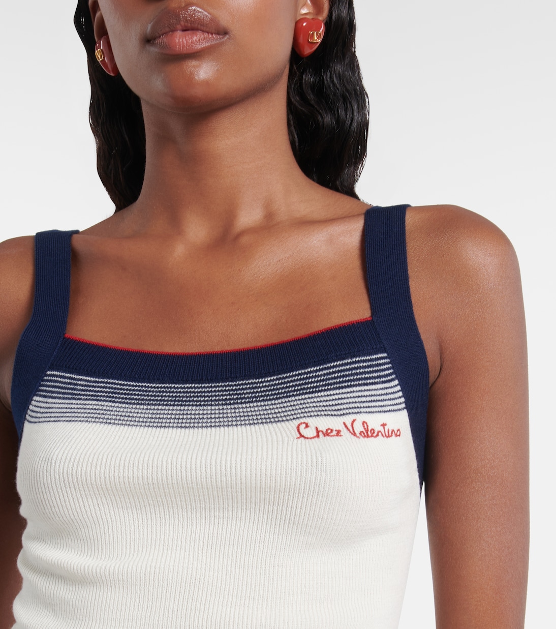 Эта майка из натуральной шерсти воплощает изысканное итальянское мастерство Valentino. Изысканный дизайн дополнен полосатым узором под квадратным вырезом и фирменной вышивкой Chez Valentino на груди.
