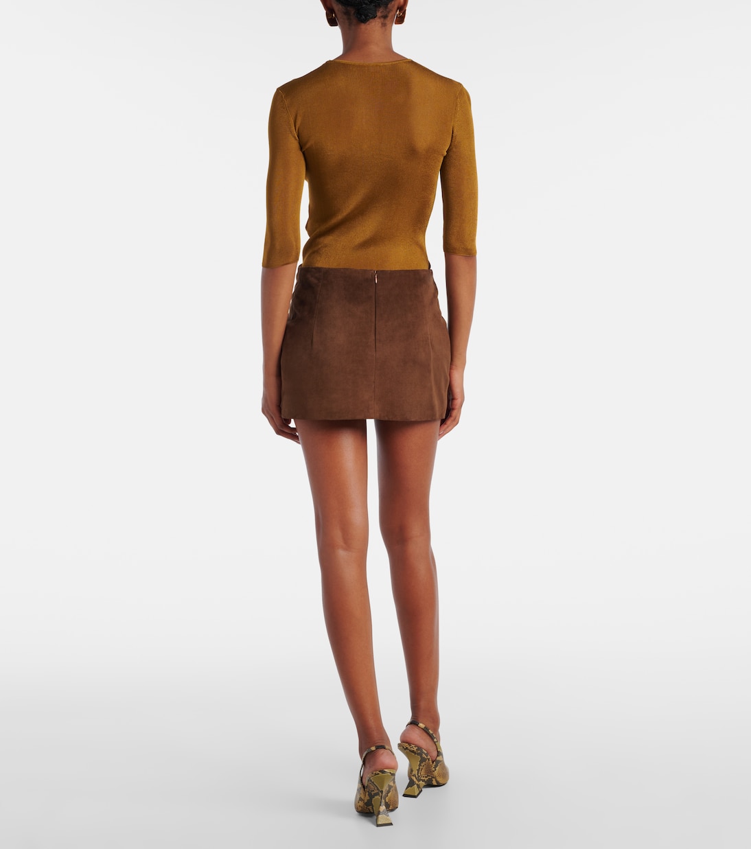 Модели Nour Hammour обрели вечную ценность благодаря ремесленному подходу бренда. Мини-юбка Avery из замши имеет облегающий силуэт и практичную застежку-молнию сзади.