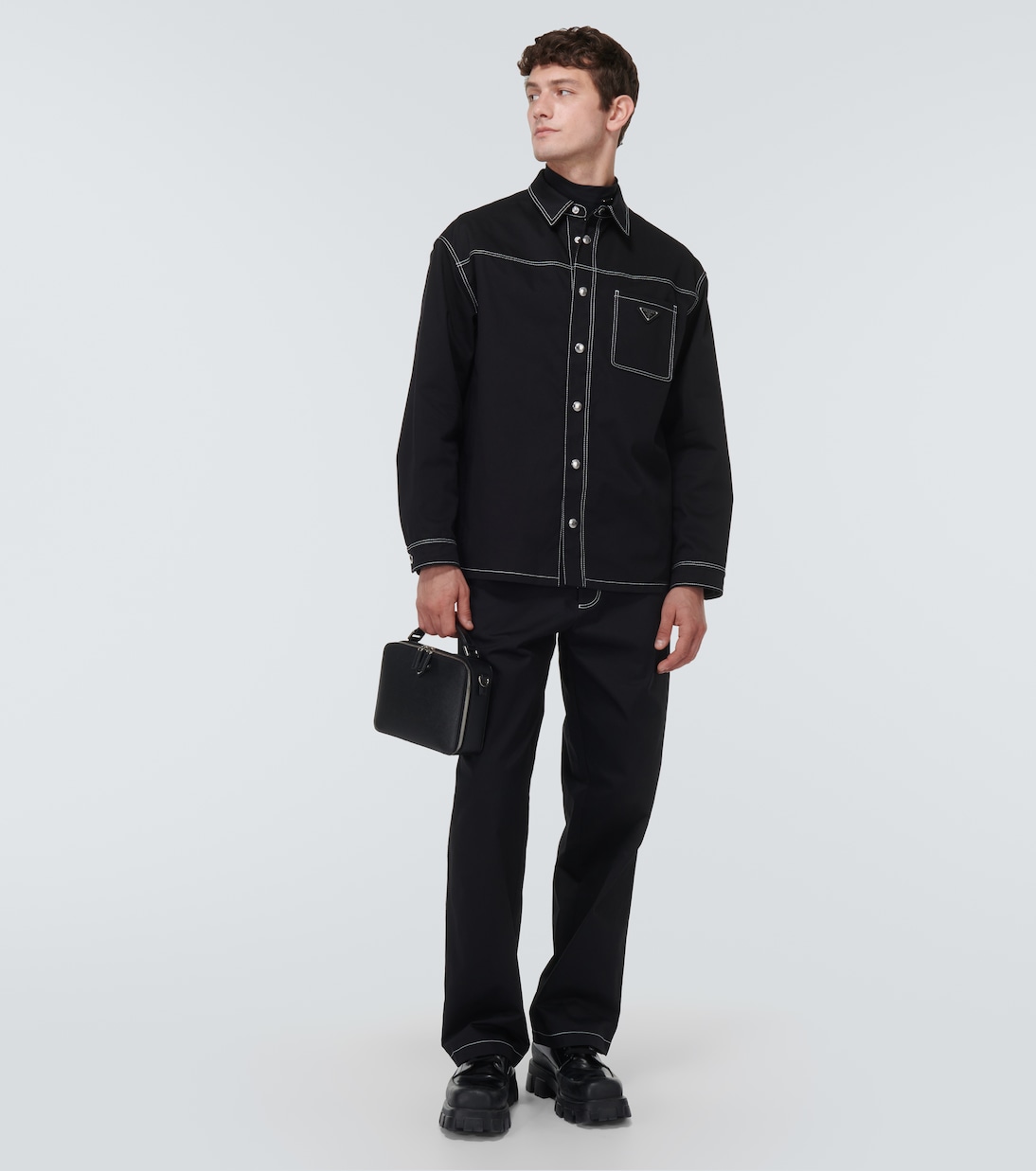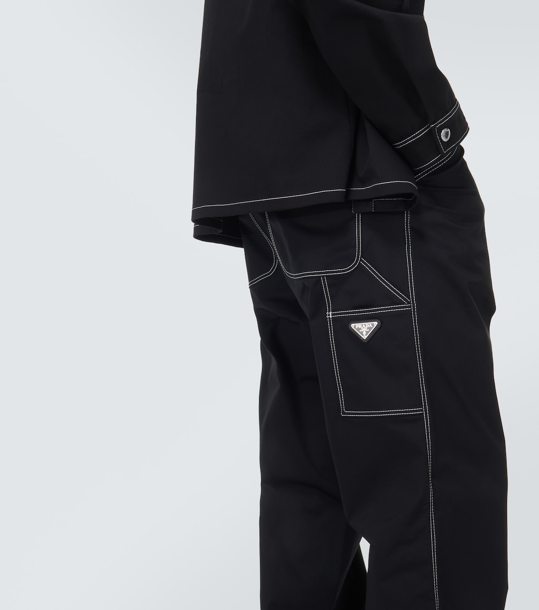 Prada освежает ваш классический образ динамичной отстрочкой, украшающей эти брюки из эластичного хлопка. Модель со средней посадкой, потайной гульфиком, шлевками для ремня и боковыми карманами.
