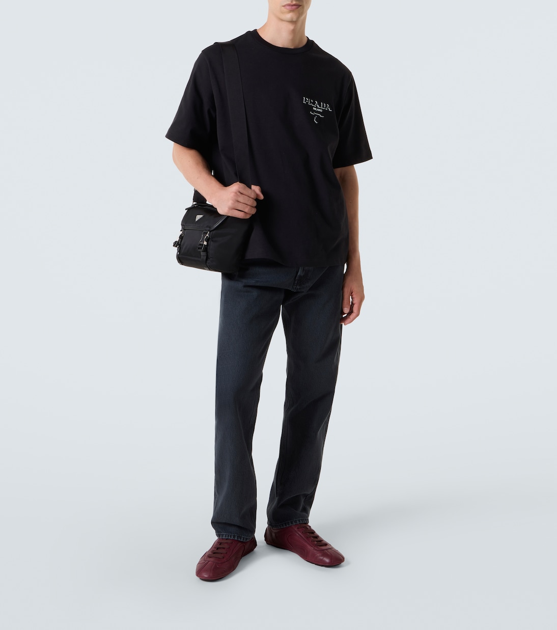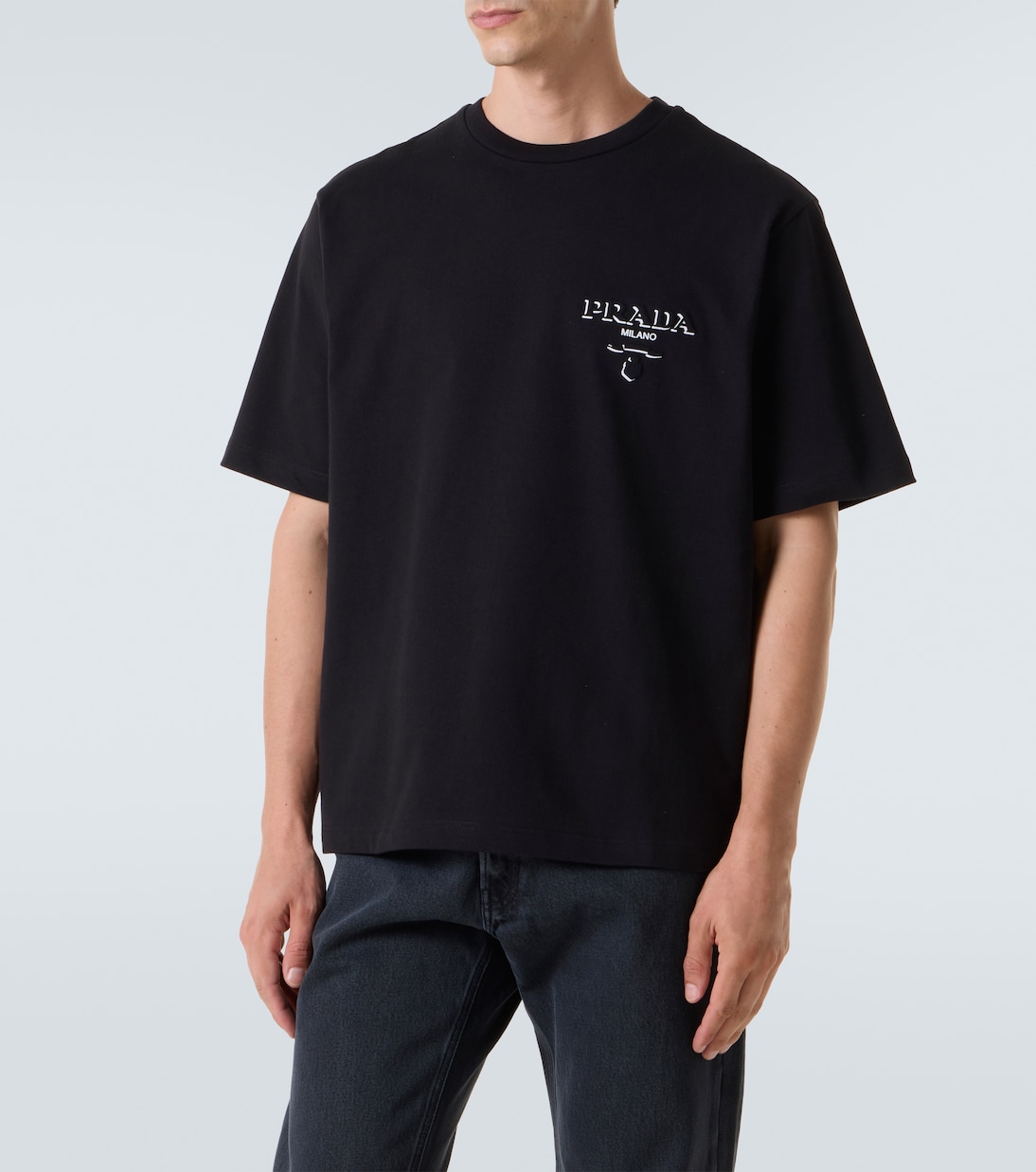 Prada переносит итальянское наследие в ярко выраженную современность благодаря лаконичному и модному крою. Эта футболка из хлопкового джерси имеет слегка свободный силуэт и дополнена принтом логотипа на груди.