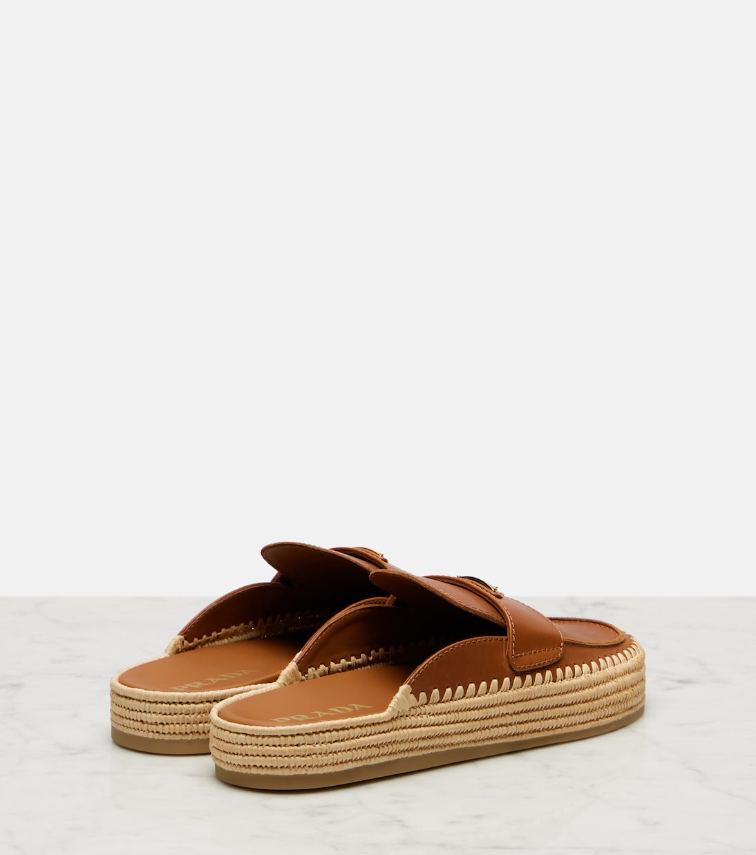 Prada переносит итальянское наследие в ярко выраженную современность благодаря лаконичному и модному крою. Эти мюли-эспадрильи изготовлены из кожи и украшены культовым логотипом бренда.