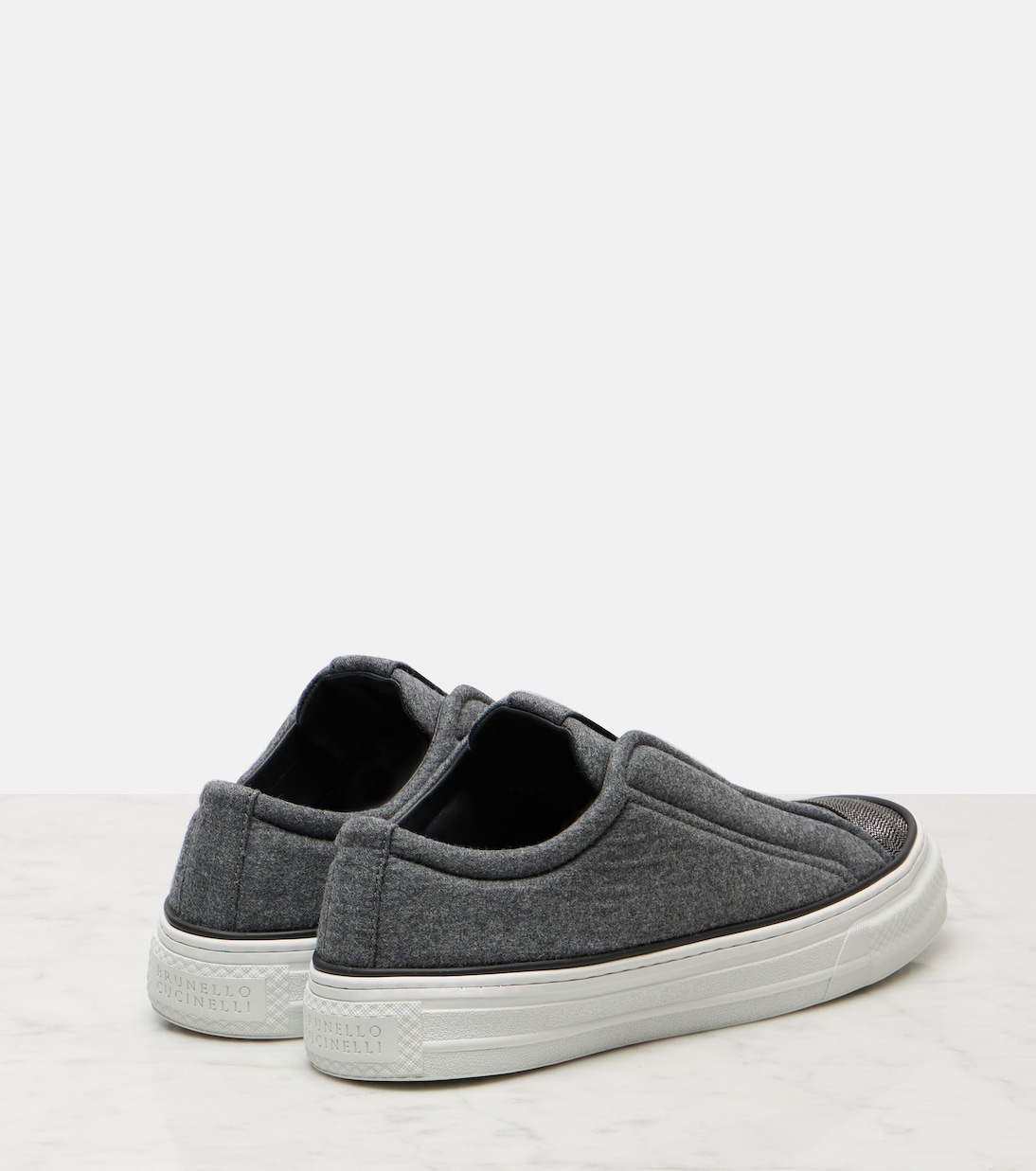 Эта пара Brunello Cucinelli вдохновлена современным и молодежным взглядом на классические кроссовки. Модель слип-он выполнена из шерсти, отличается элегантным миндалевидным носком и низким силуэтом.