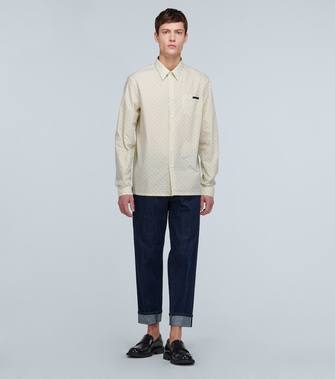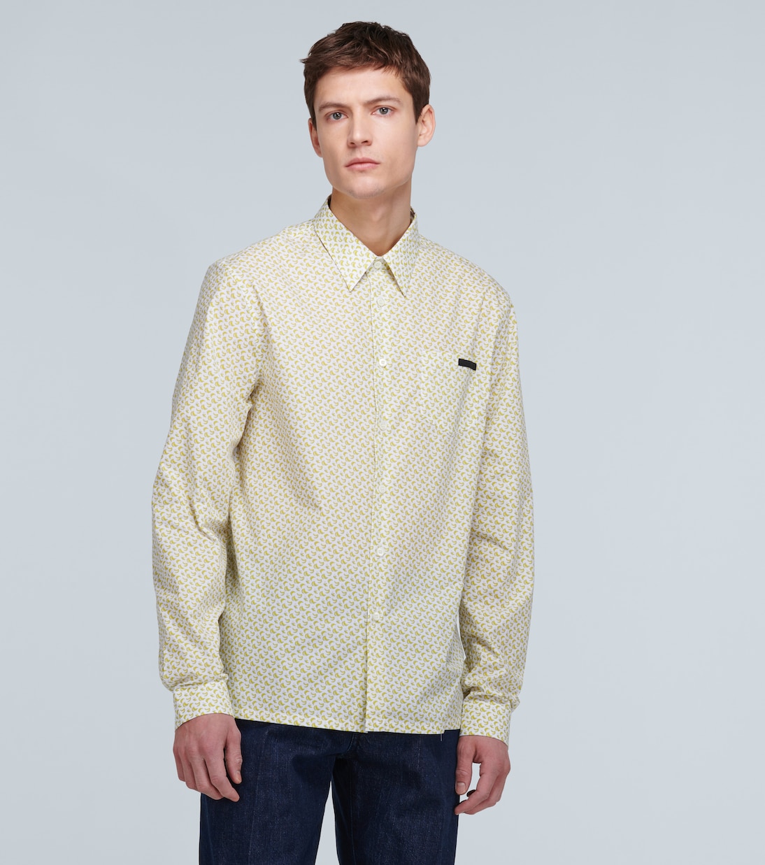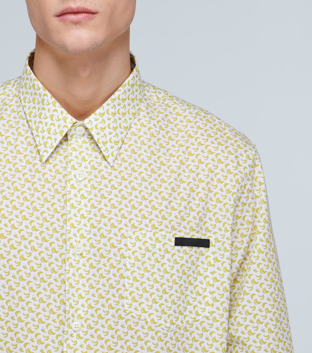 Эта рубашка Giallo от Prada, изготовленная в Италии из хлопкового поплина, имеет облегающий крой и яркий повторяющийся рисунок с изображением бананов. Рубашка застегивается на пуговицы спереди и украшена нашивкой Prada на накладном кармане.