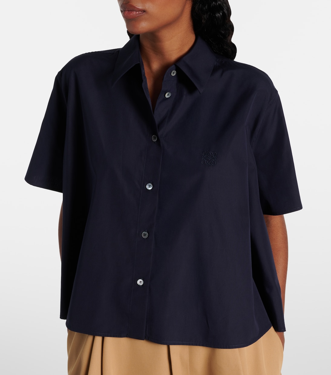 Эта рубашка Loewe, изготовленная в Италии из чистого хлопка, отличается свободным и струящимся силуэтом. На груди расположен фирменный мотив бренда – анаграмма.