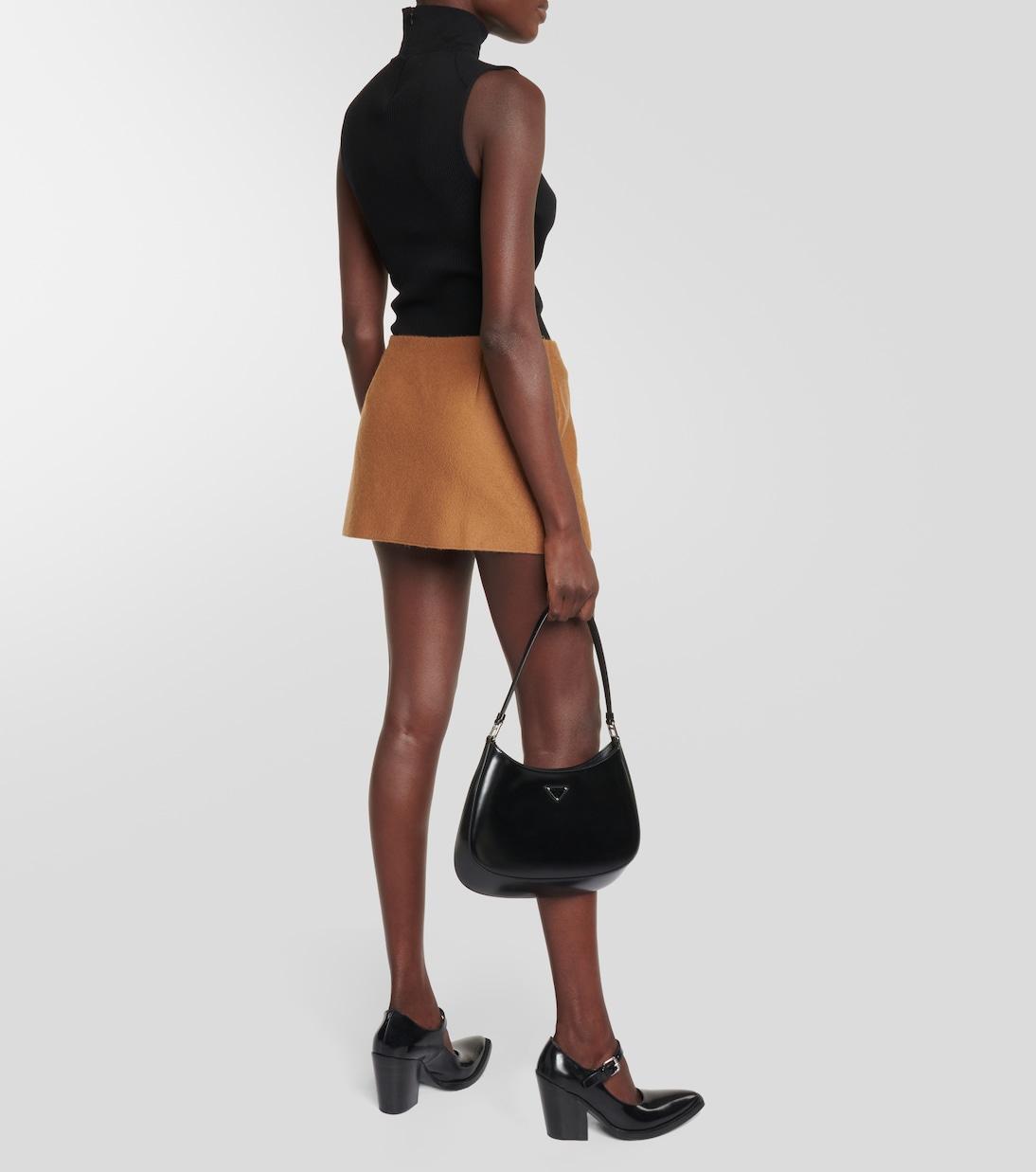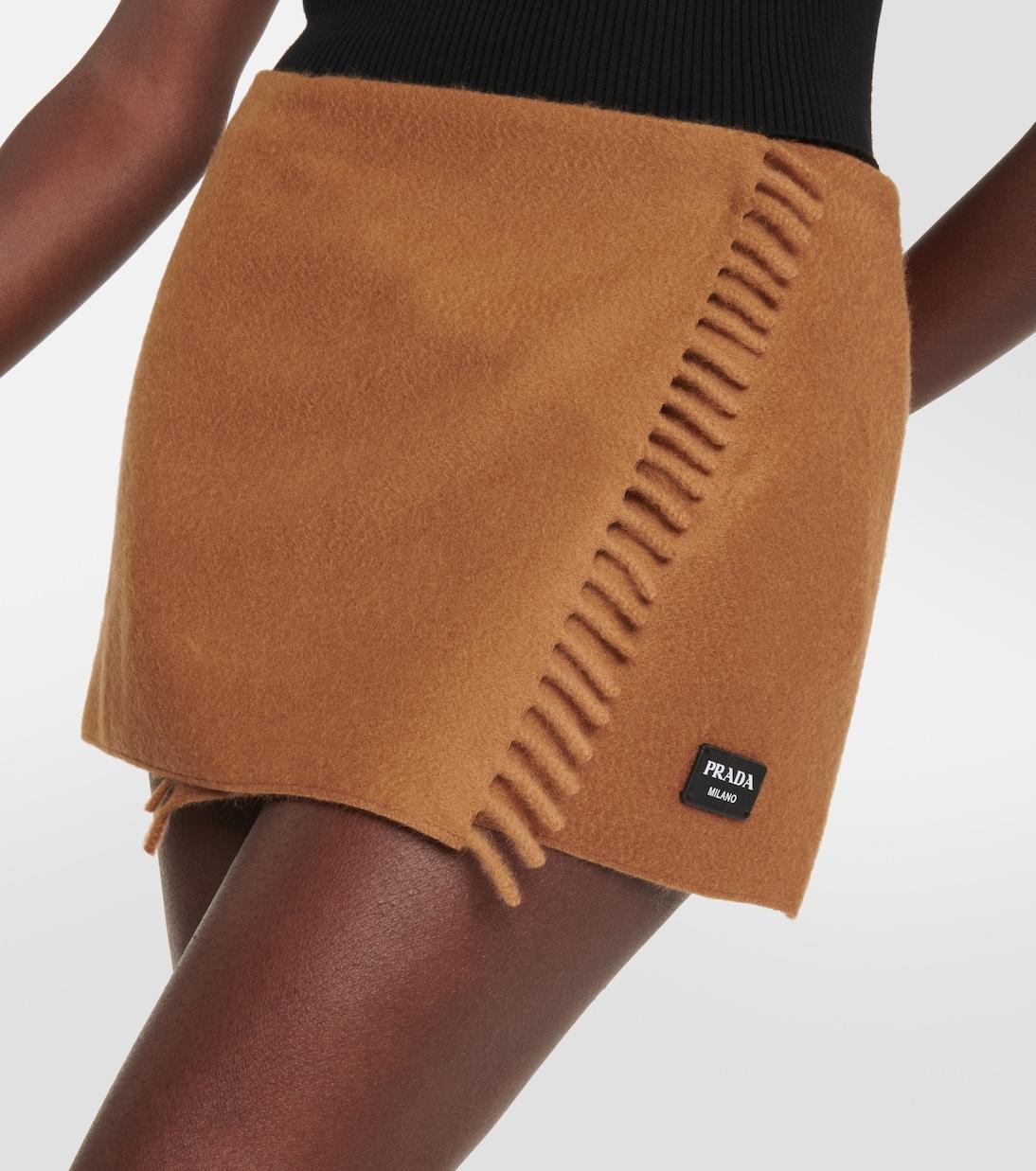 Prada продолжает определять ландшафт моды, предлагая такие авангардные модели, как эта мини-юбка. Эта модель микро-длины, выполненная из чистого кашемира, имеет силуэт «запах», отделку бахромой и контрастную нашивку с логотипом.