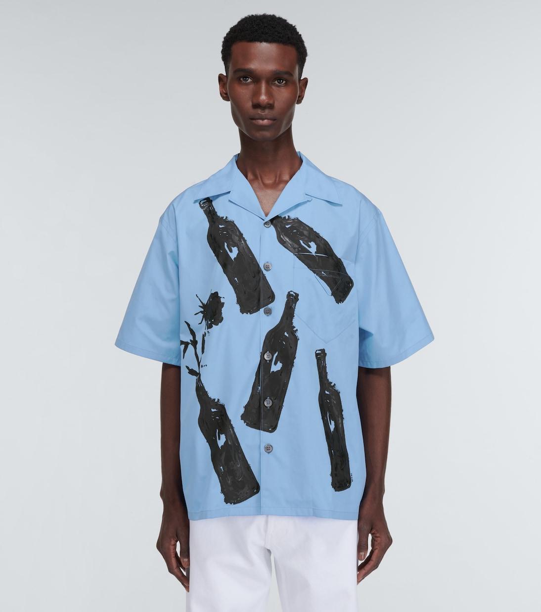 Prada создает динамичную альтернативу традиционному крою с помощью этого искусного кроя. Эта рубашка для боулинга из хлопка имеет короткий рукав, отложной воротник, пуговицы-ракушки и сплошной живописный принт.