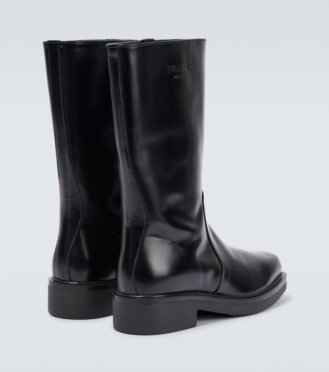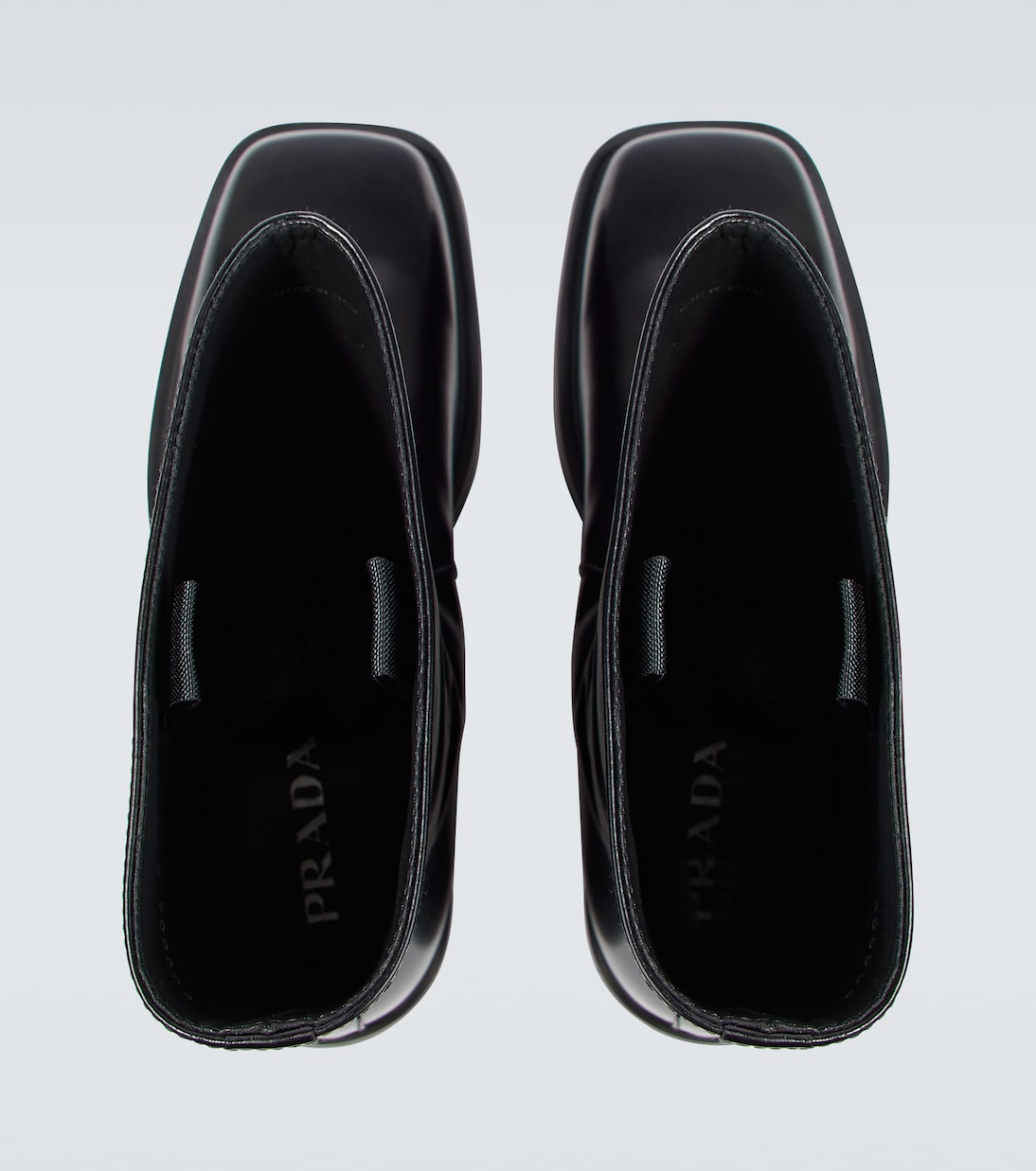 Prada сочетает современный дизайн с непреходящим мастерством обработки кожи, создавая эти ботинки. Модель изготовлена в Италии из шлифованной кожи. Она отличается квадратным носком, фирменными деталями и изогнутыми вставками на союзке.