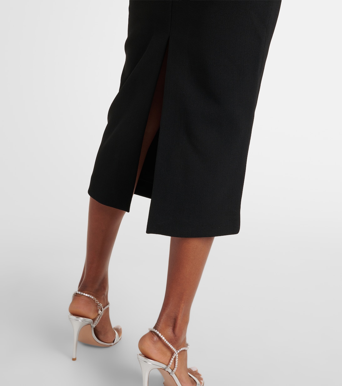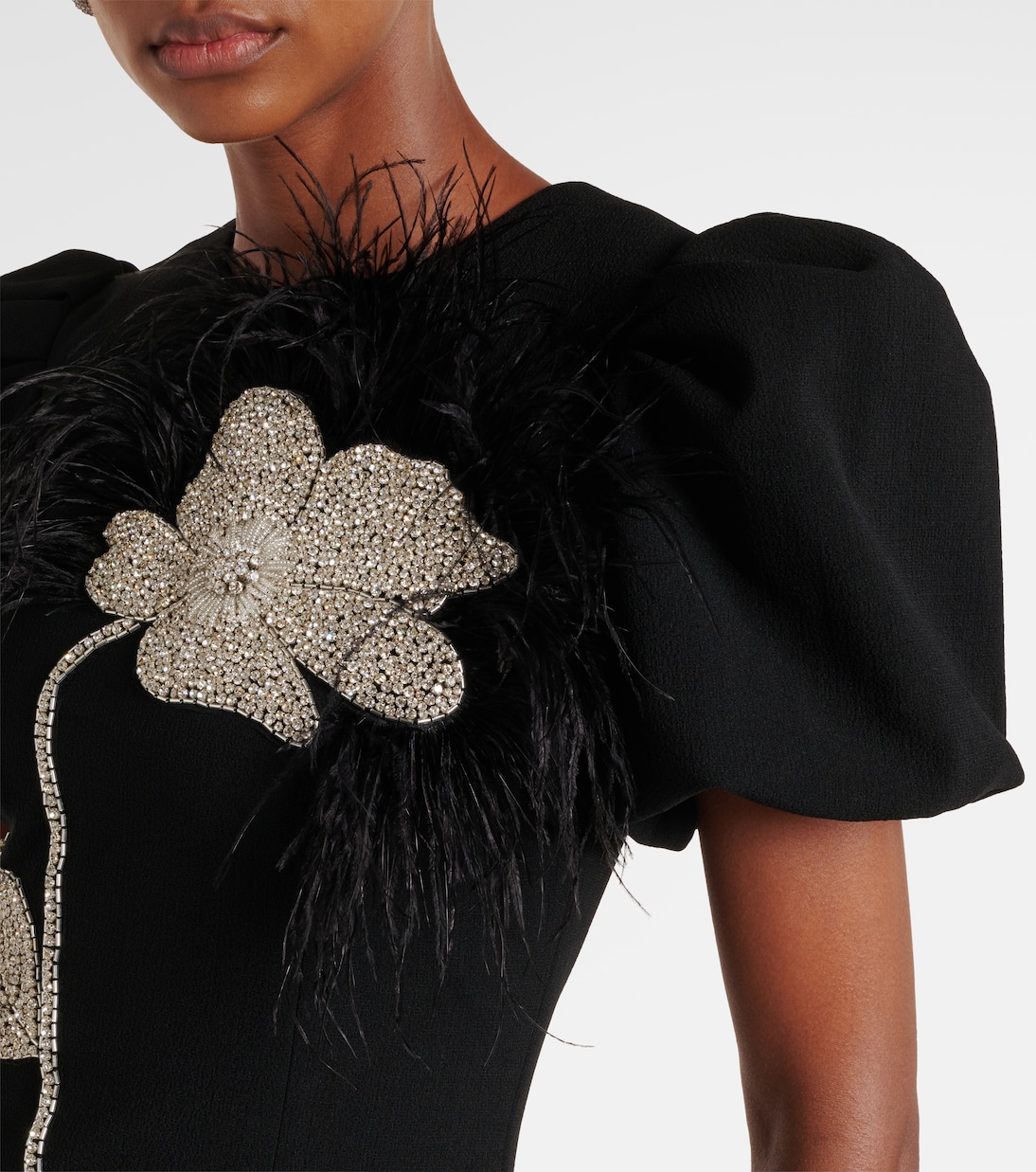 Rebecca Vallance, известный бренд, предлагающий привлекательную одежду для торжеств, отличается блеском и гламуром. Это коктейльное платье из креповой ткани украшено цветочным декором.