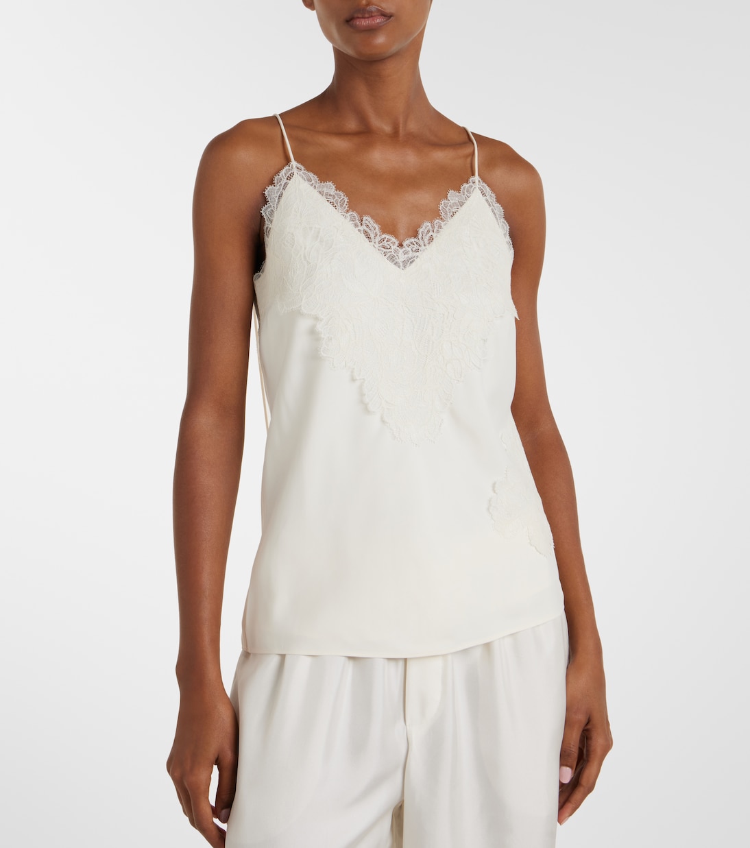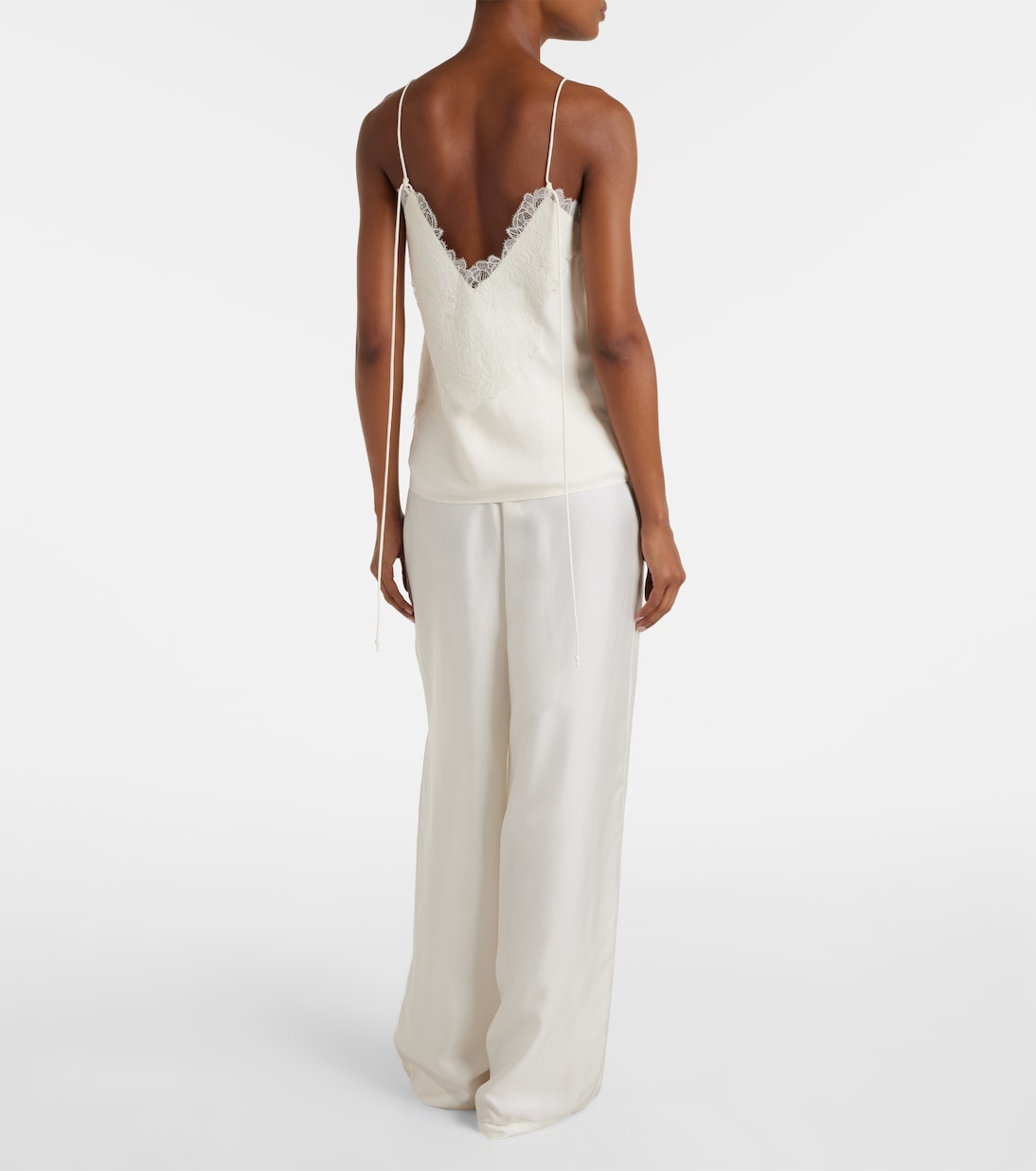 Róhe отдаёт предпочтение многогранному подходу к дизайну, наполняя каждую коллекцию элементами голландского искусства и архитектуры. Эта атласная майка украшена изящной кружевной отделкой и завязывающимися бретельками.