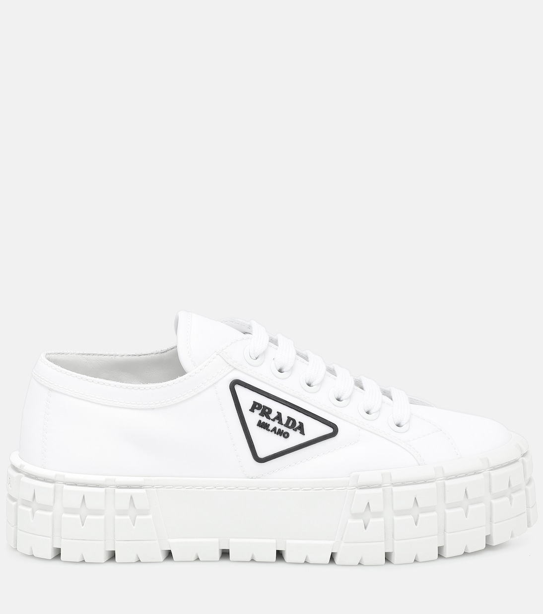 На первый взгляд, кроссовки Wheel от Prada кажутся обычными кроссовками; при ближайшем рассмотрении вы заметите ребристую резиновую подошву, напоминающую покрышки для мотокросса. Сделанные в Италии из белого хлопкового габардина, они ненавязчиво провокационны в характерном для Prada стиле.