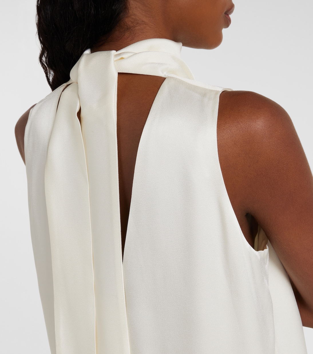 Róhe предлагает модели, которые одновременно минималистичны и изысканны, как, например, этот топ без рукавов. Модель выполнена из блестящего атласа и дополнена драпированным вырезом, который добавляет движения.