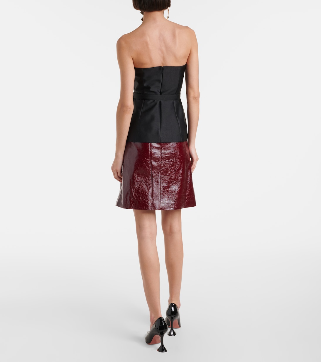 Self-Portrait завоевал огромную популярность благодаря своей мягкой женственной эстетике. Этот топ без бретелек украшен эффектными пуговицами и дополнен поясом в тон, который подчёркивает приталенный силуэт.