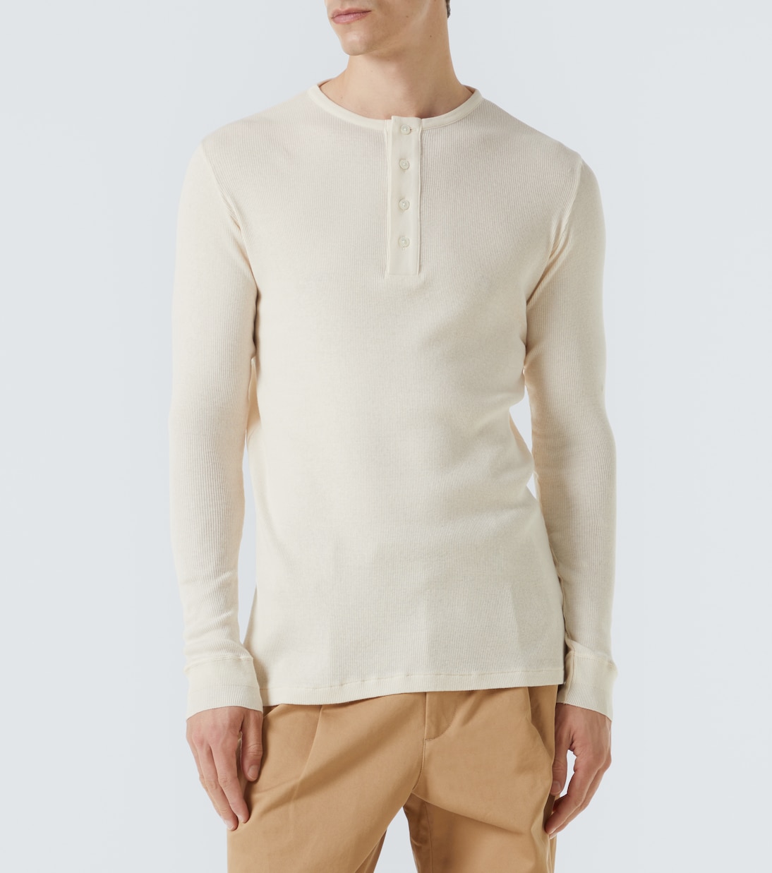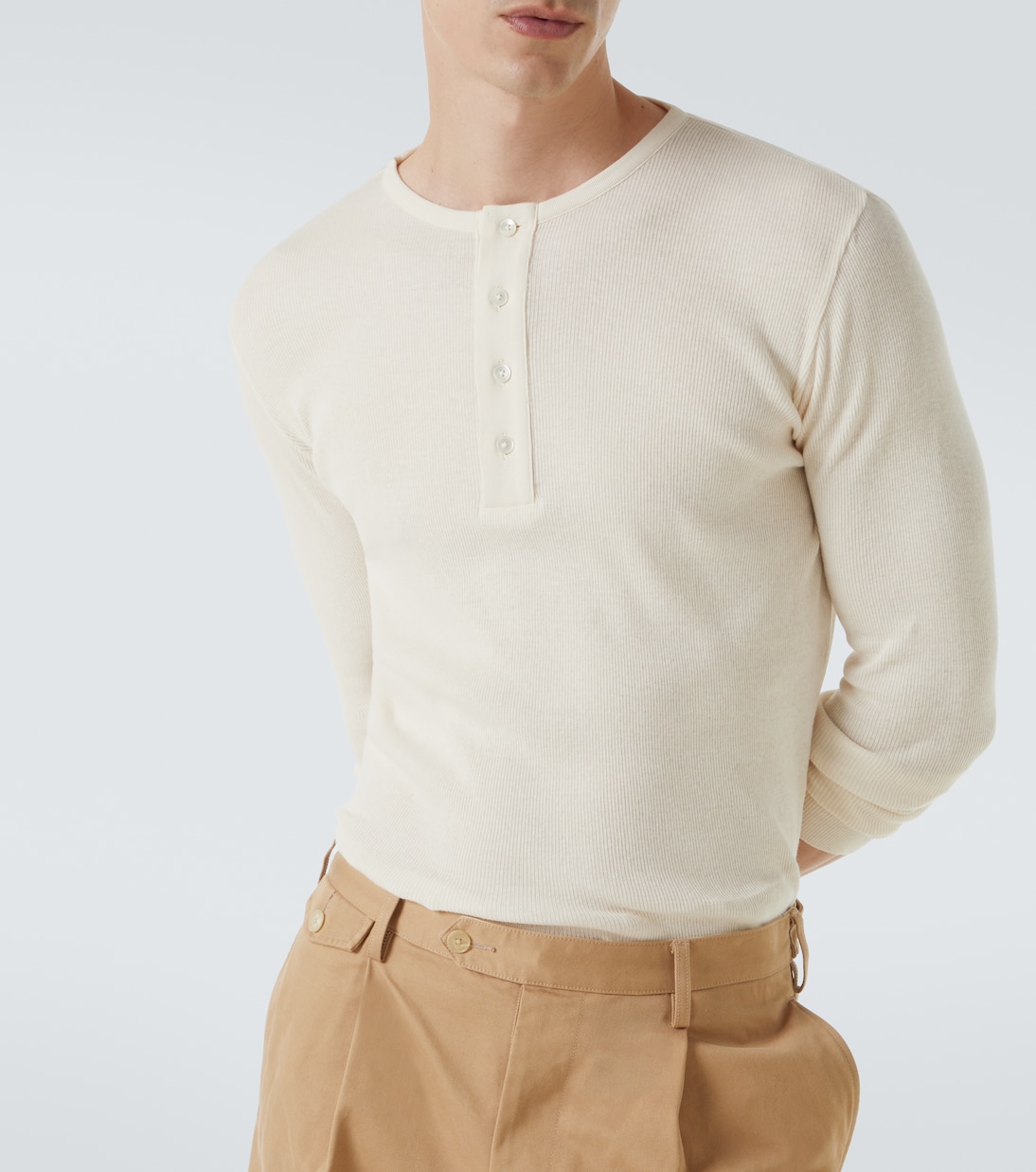 Эта рубашка хенли от Auralee, изготовленная в Японии из чистого хлопка, мягкая и комфортная. Модель имеет частично застёгнутую спереди пуговицы и спущенные плечи.