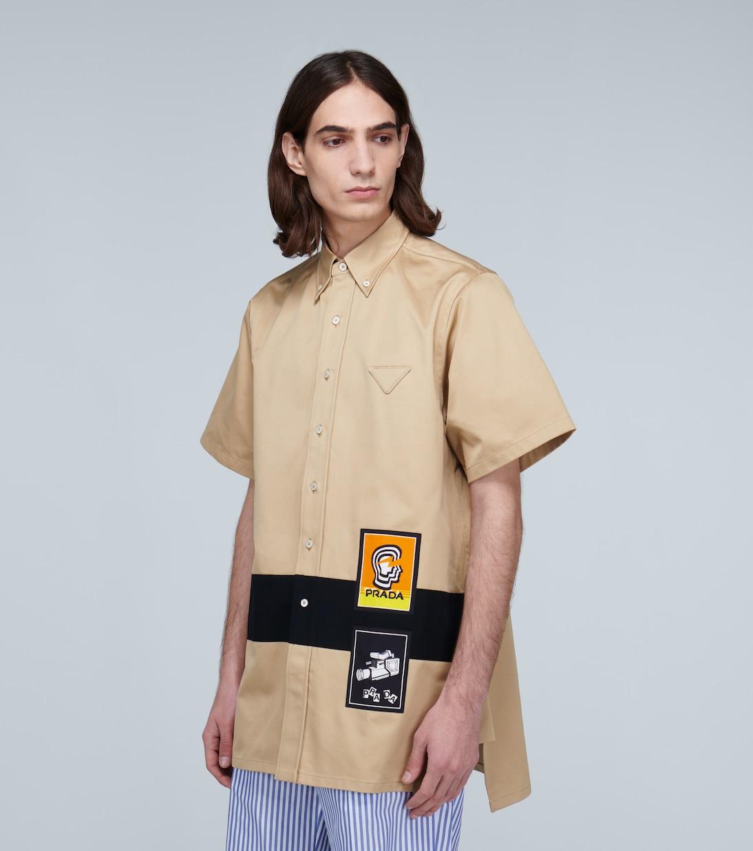 Эта рубашка чинос с короткими рукавами от Prada, выполненная из хлопка, дополнена фирменным треугольным логотипом бренда и вышитыми спереди нашивками.
