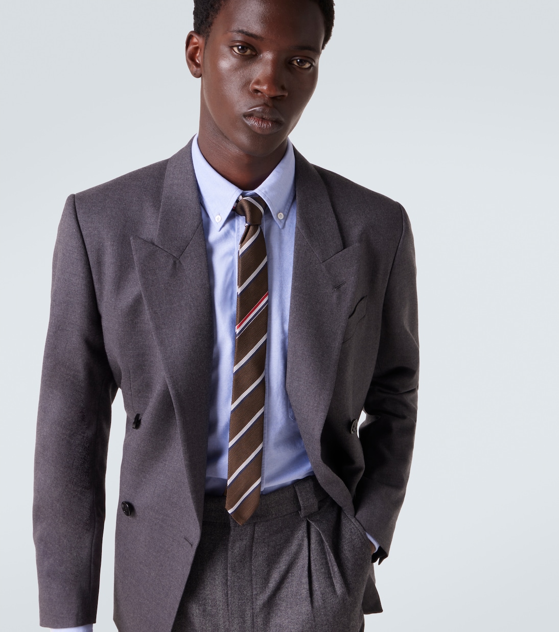 Thom Browne привлёк к себе внимание всего мира, переосмыслив современный стиль кроя и создав современную униформу. Этот галстук, изготовленный в Италии из тонкого шёлка, украшен классическим полосатым узором, который добавит элегантности вашим любимым костюмам.