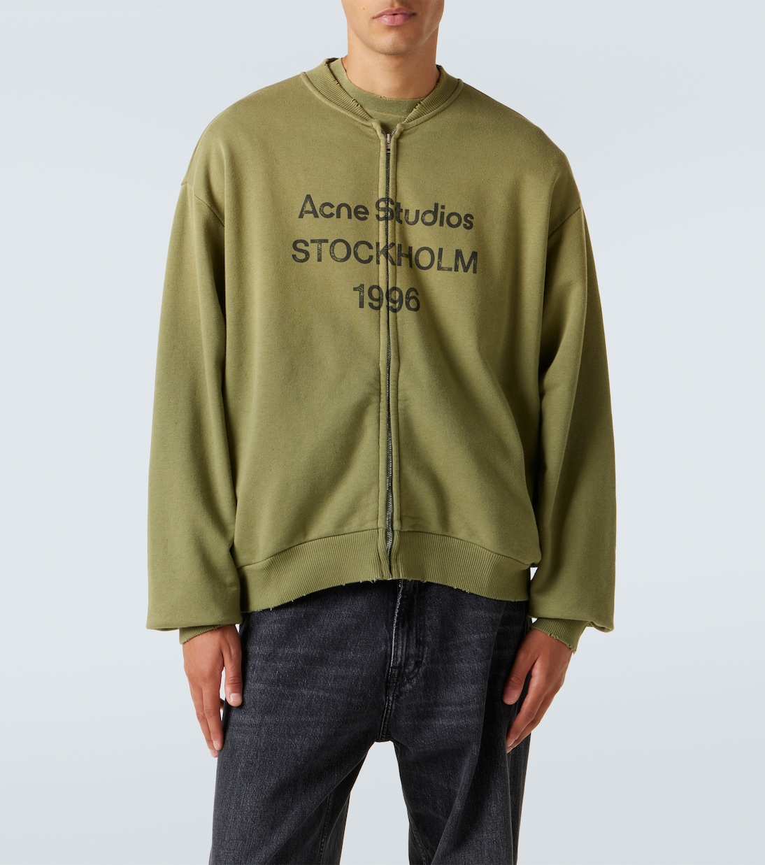 Эта толстовка на молнии от Acne Studios выполнена из хлопкового флиса с фирменной отделкой и логотипом бренда спереди. Эта эффектная модель дополнена ребристым вырезом, манжетами и подолом.