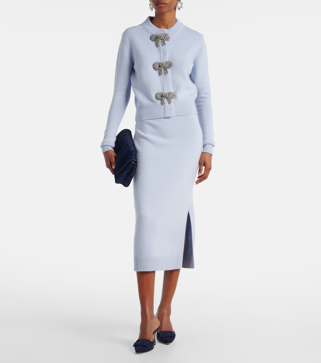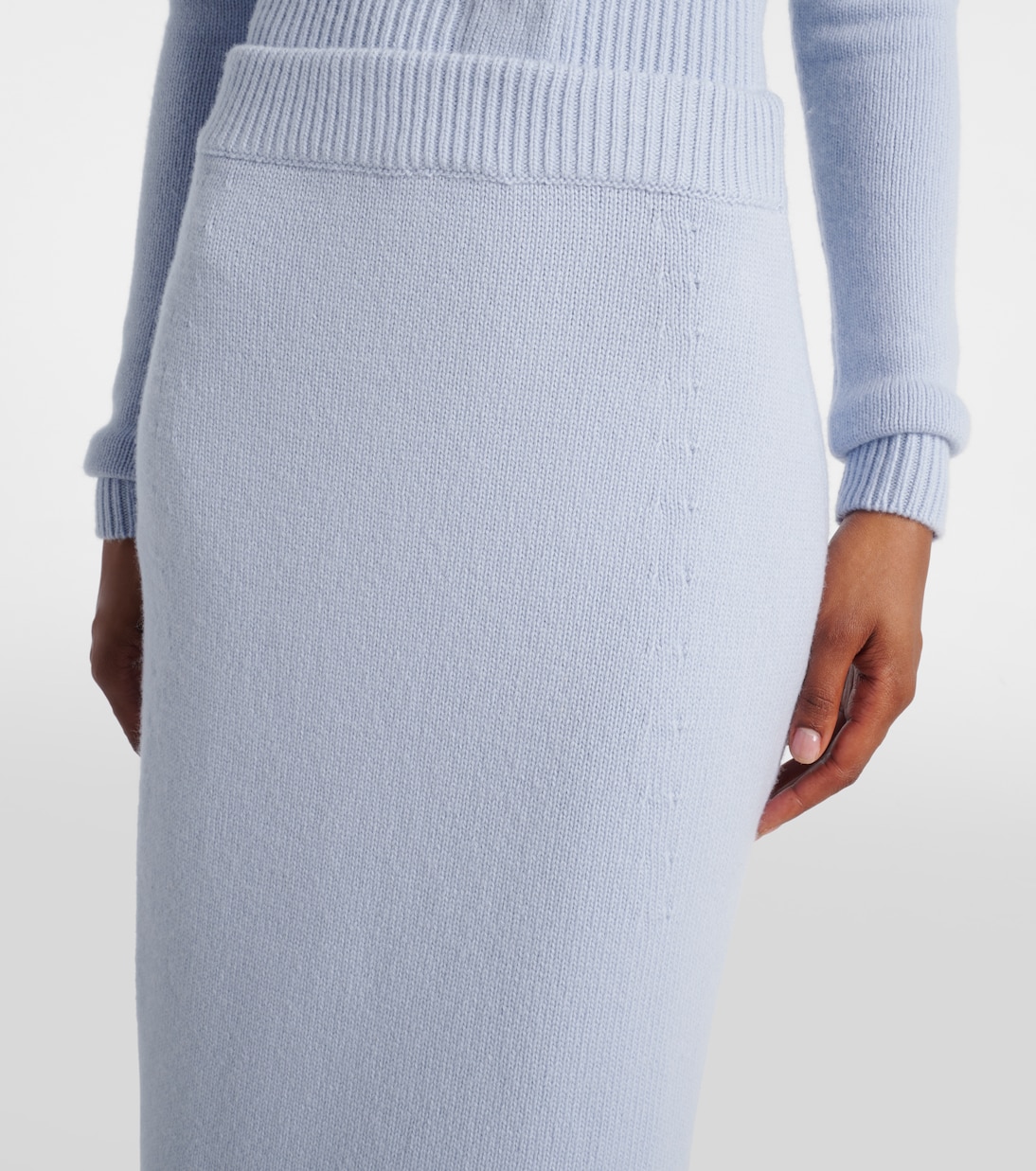 Эта трикотажная юбка миди Carolina Herrera, выполненная в Италии из шерсти и кашемира, обеспечивает мягкость и тепло. Модель имеет облегающий силуэт «карандаш», эластичный пояс в рубчик и привлекательный разрез сбоку.