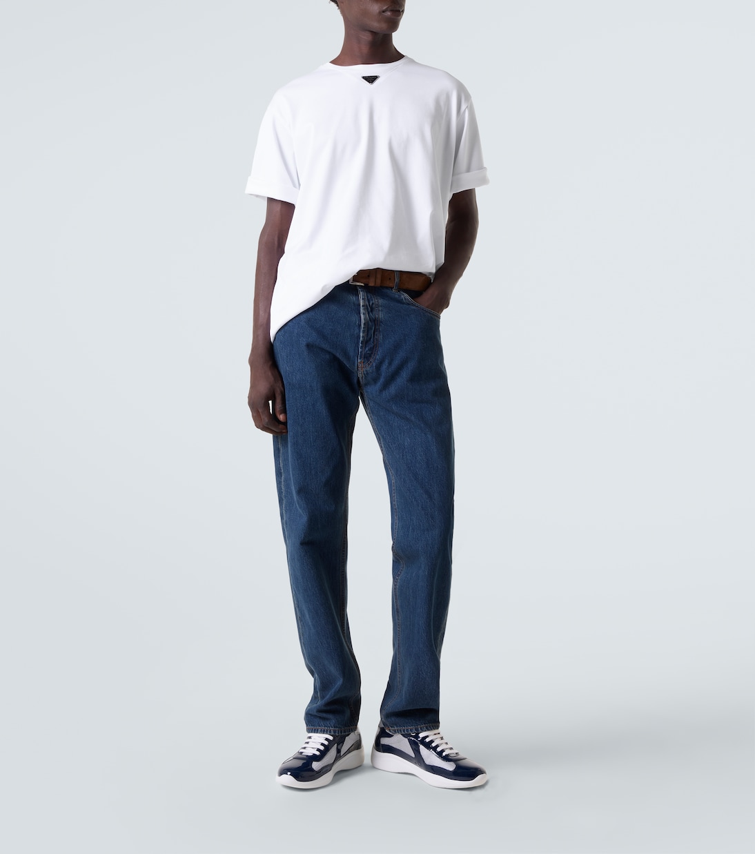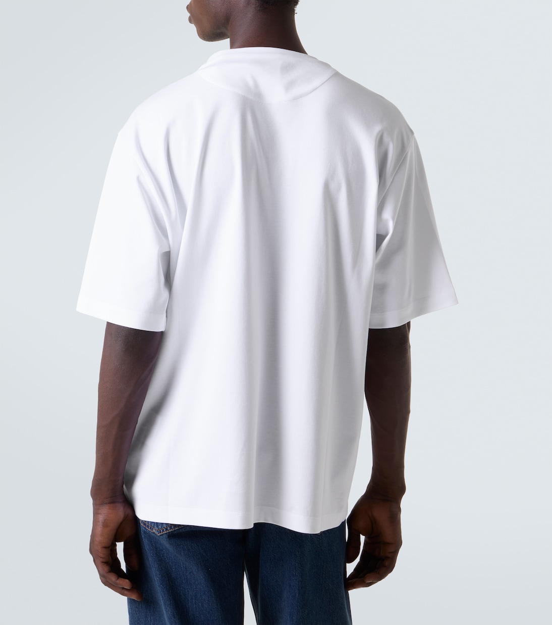Эта футболка из мягкого хлопка отличается минималистичным кроем и изящным логотипом. Prada переносит итальянское наследие в ярко выраженную современность, предлагая лаконичный и модный подход.