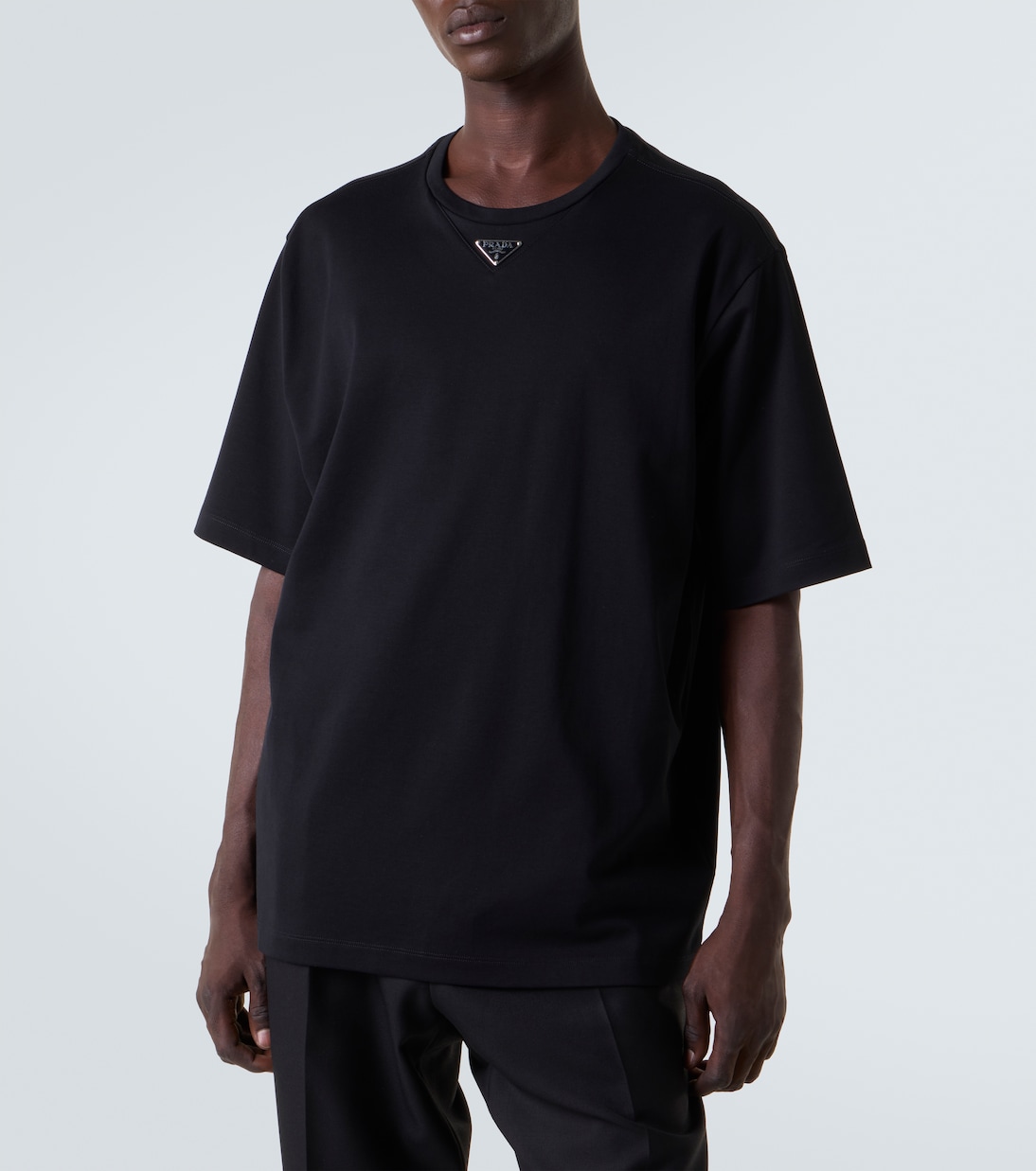 Эта футболка из мягкого хлопка отличается минималистичным кроем и изящным логотипом. Prada переносит итальянское наследие в ярко выраженную современность, предлагая лаконичный и модный подход.