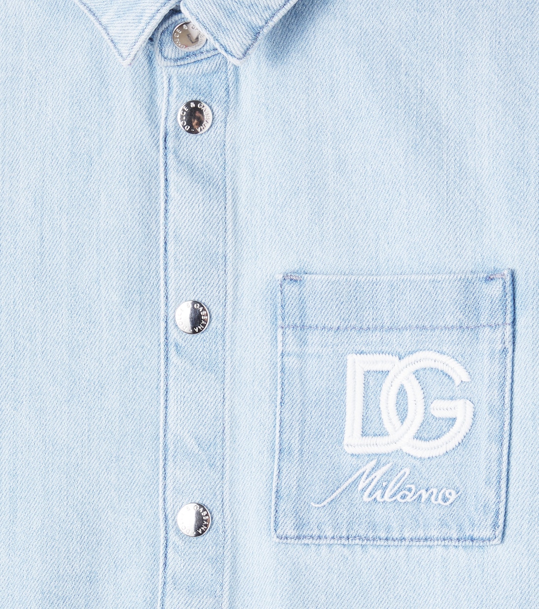 Эта хлопковая джинсовая рубашка от Dolce&Gabbana Kids имеет застежку на кнопки спереди, классический прямой воротник и нагрудный карман, отделанный вышивкой DG для фирменного штриха, который добавляет индивидуальности повседневной вещи.