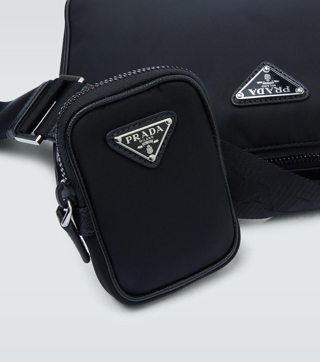 Эта черная сумка через плечо от Prada изготовлена из технического нейлона с застежкой-молнией сверху, кожаной отделкой и миниатюрным карманом на ремешке.