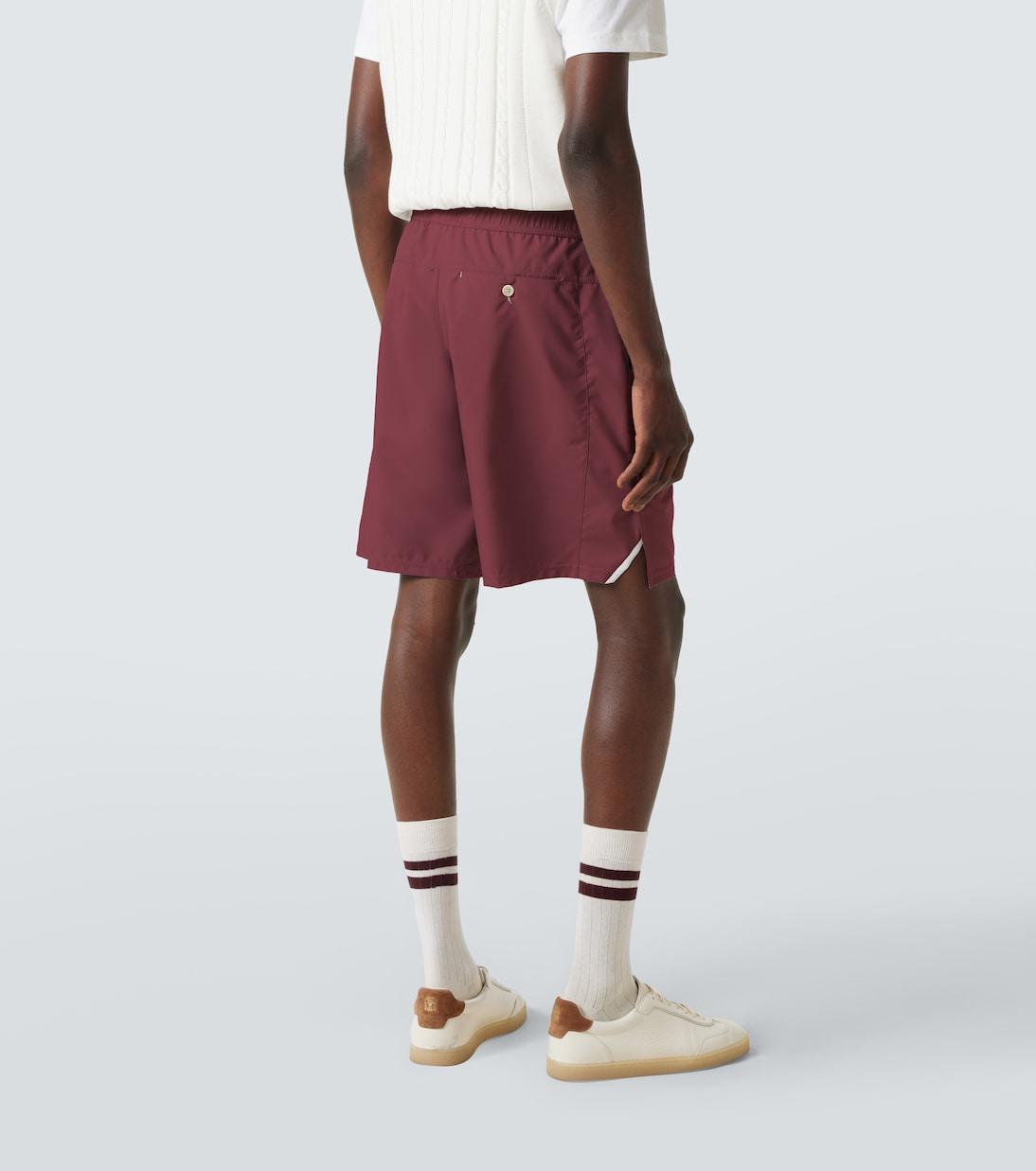 Обратитесь к Brunello Cucinelli за мужской одеждой, которая шепчет, а не кричит. Эти шорты, украшенные логотипом бренда, изготовлены из прочного технологического материала бордового оттенка.
