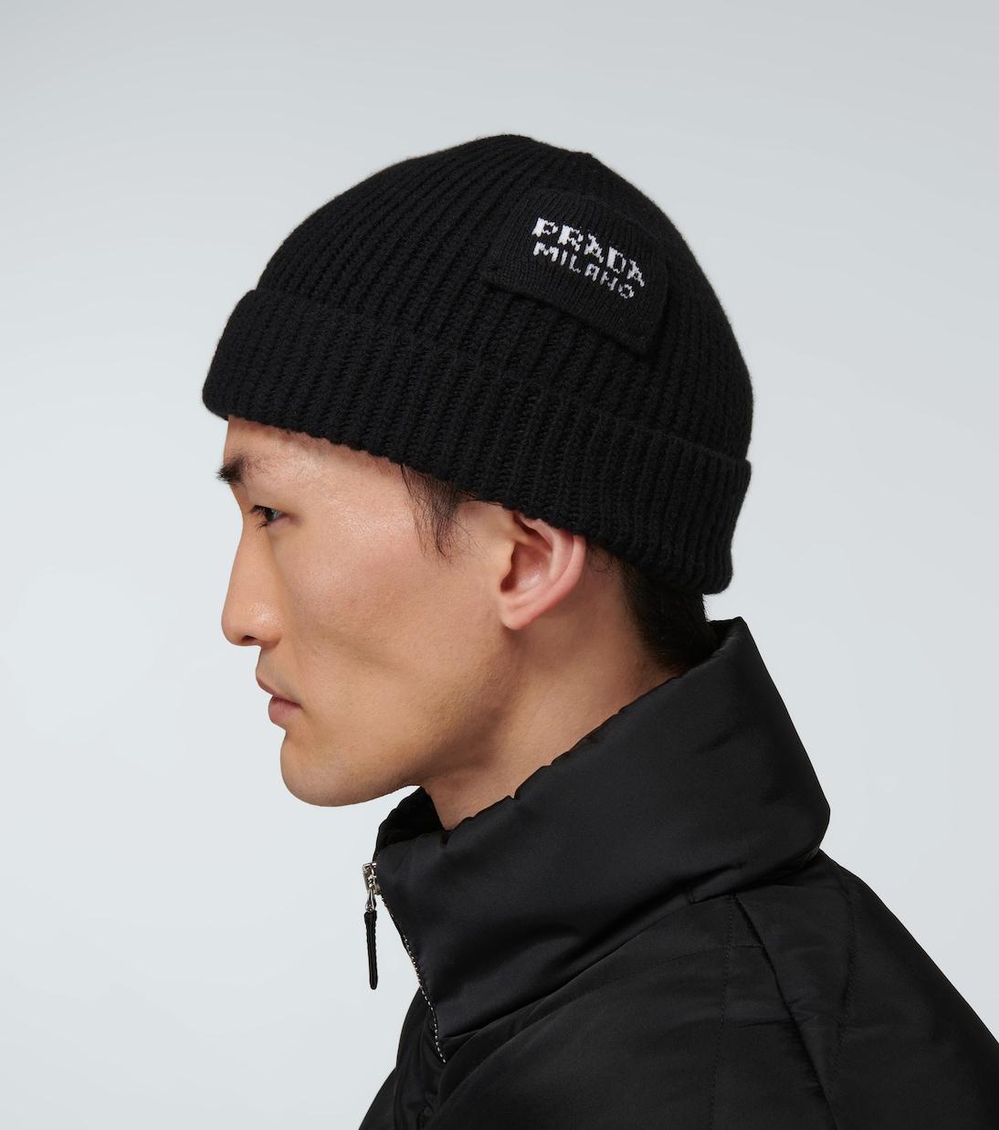 Эта шапка-бини из смеси шерсти и кашемира от Prada выполнена в черном цвете, связана ребристой вязкой, слегка растягивается, украшена нашивкой с логотипом в технике интарсии спереди и отворотом.