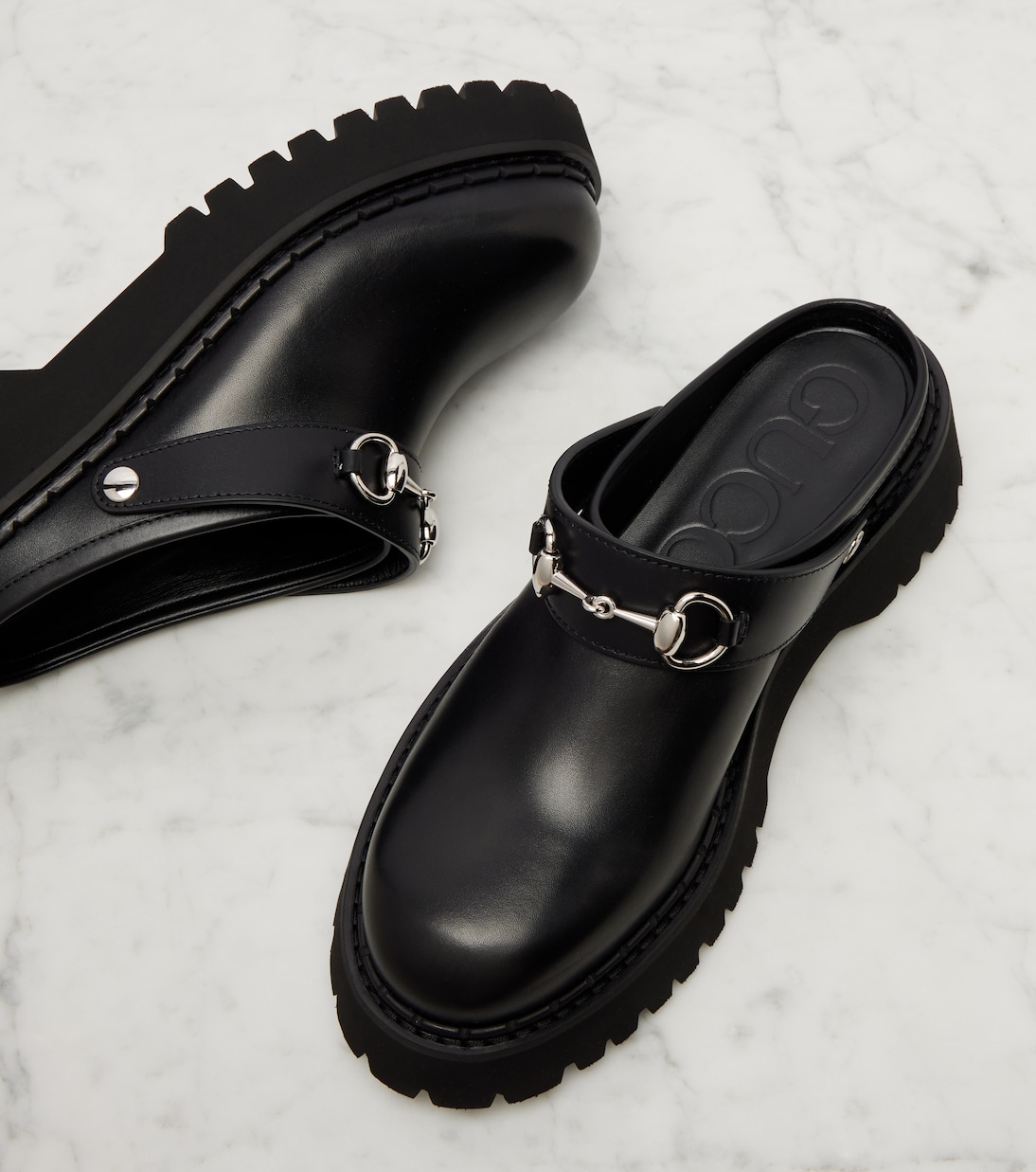 Балетки Gum от Gucci, изготовленные из мягкой кожи, излучают элегантность. Модель отличается закругленным носком и серебристой фурнитурой, что добавляет ей немного гламура.
