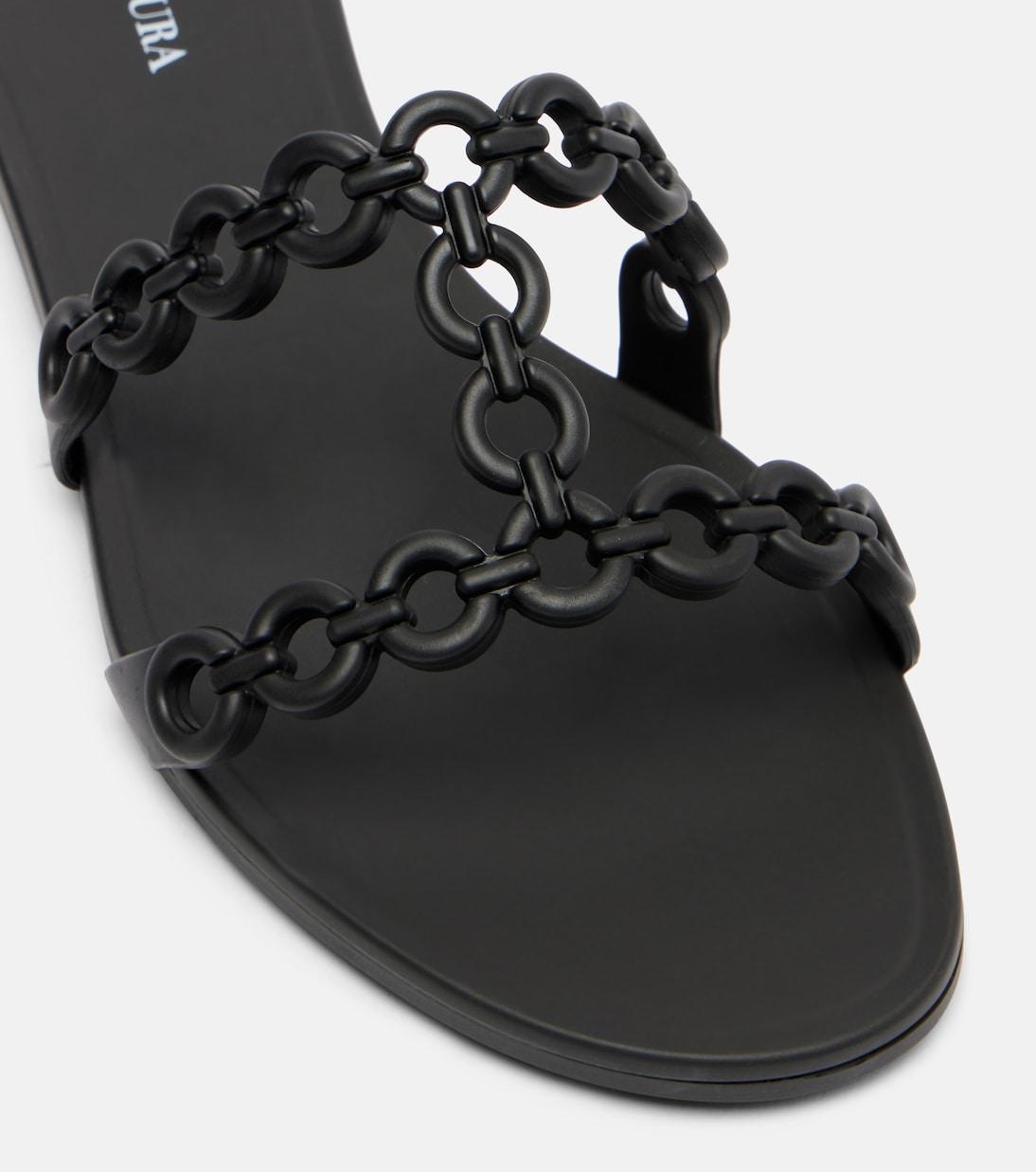 Обувь Aquazzura – это творение любви: одна пара может состоять из более чем 30 компонентов, каждый из которых собирается вручную опытными мастерами. Сандалии Infinity Chain Jelly изготовлены в Италии, создавая лёгкий силуэт без застёжки, который одновременно игрив и практичен.