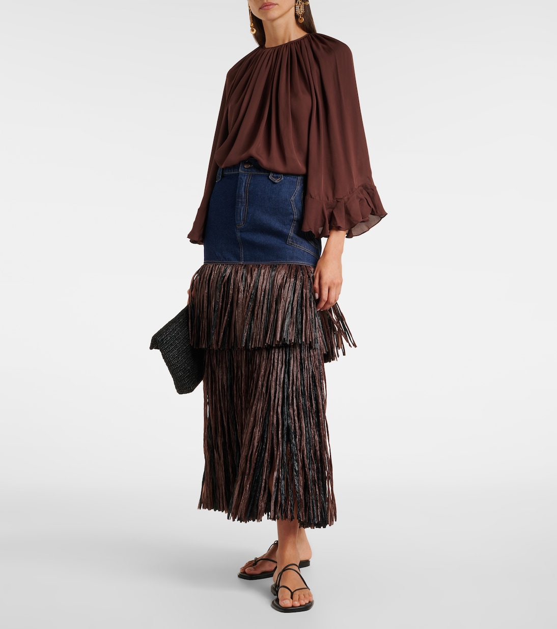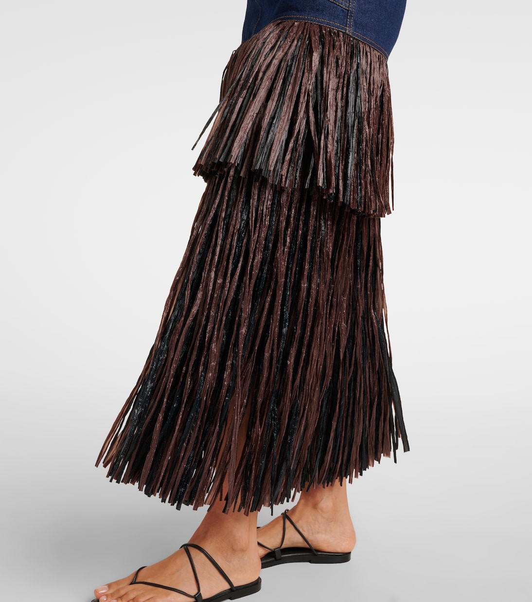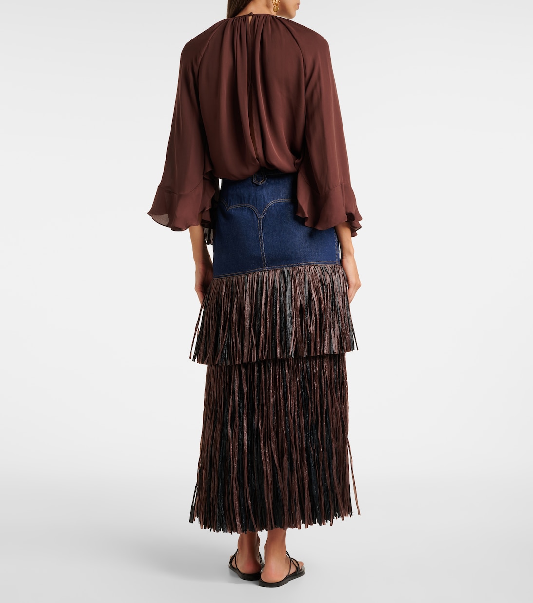 Эта юбка миди от Johanna Ortiz – игривая интерпретация классического джинсового стиля – украшена ярусами бахромы для тактильного эффекта. Модель имеет среднюю посадку и застежку-молнию спереди.