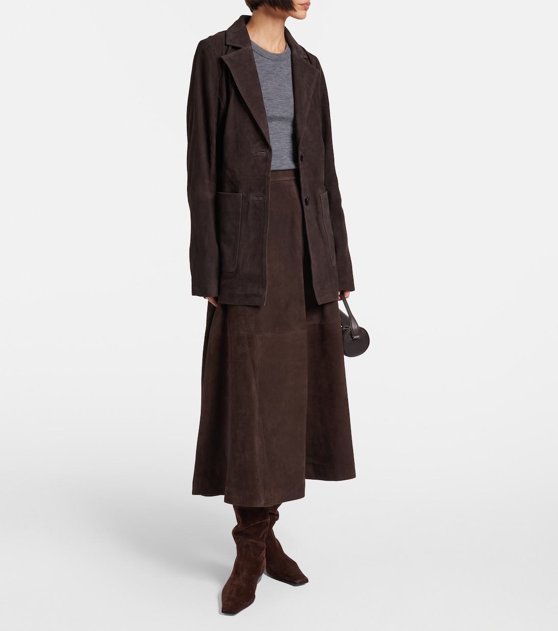 Эта юбка миди от Róhe выполнена из мягкой замши и имеет струящийся А-образный силуэт. Модель полностью на подкладке, с высокой талией и застёжкой-молнией сбоку, создающей элегантный образ.