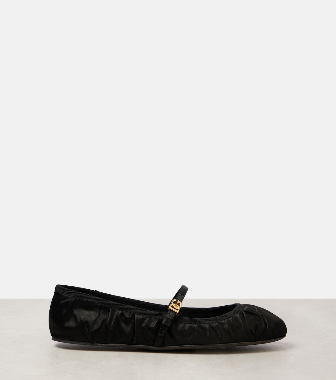 Эти атласные балетки от Dolce&Gabbana сделают каждый ваш шаг элегантным. Они украшены культовыми золотистыми логотипами бренда DG, перекрещивающимися ремешками и окантовкой из репсовой ленты, а также фирменной кожаной подошвой.