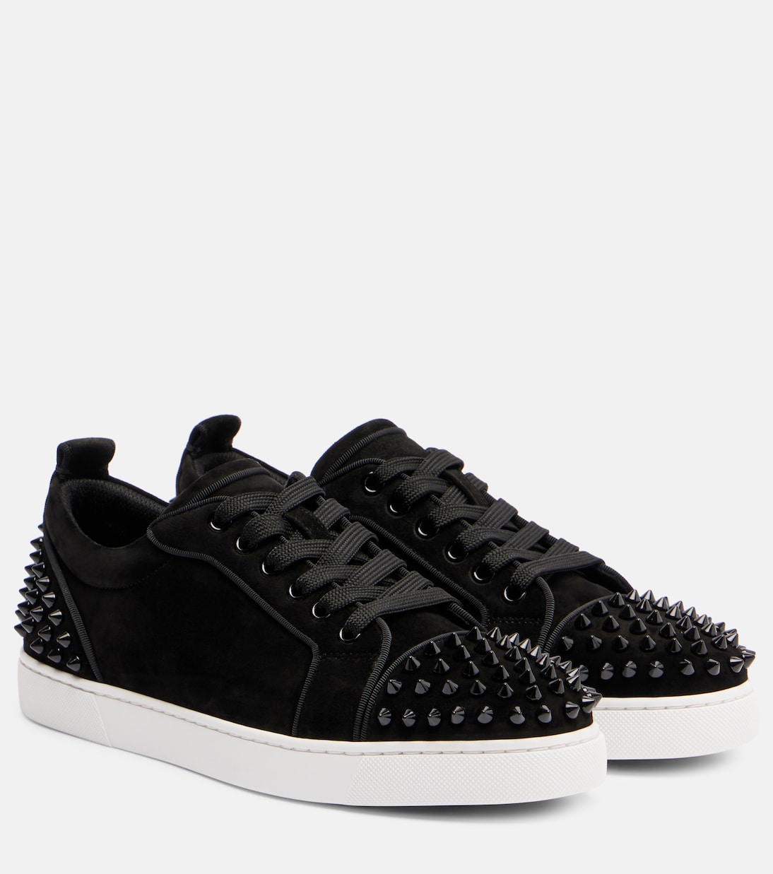 Опасно стильные кроссовки Louise Junior Spikes от Christian Louboutin украшены заостренными шипами на носке и пятке. Сделано в Италии, эта версия выделяется шнурками в тон и замшевой конструкцией.