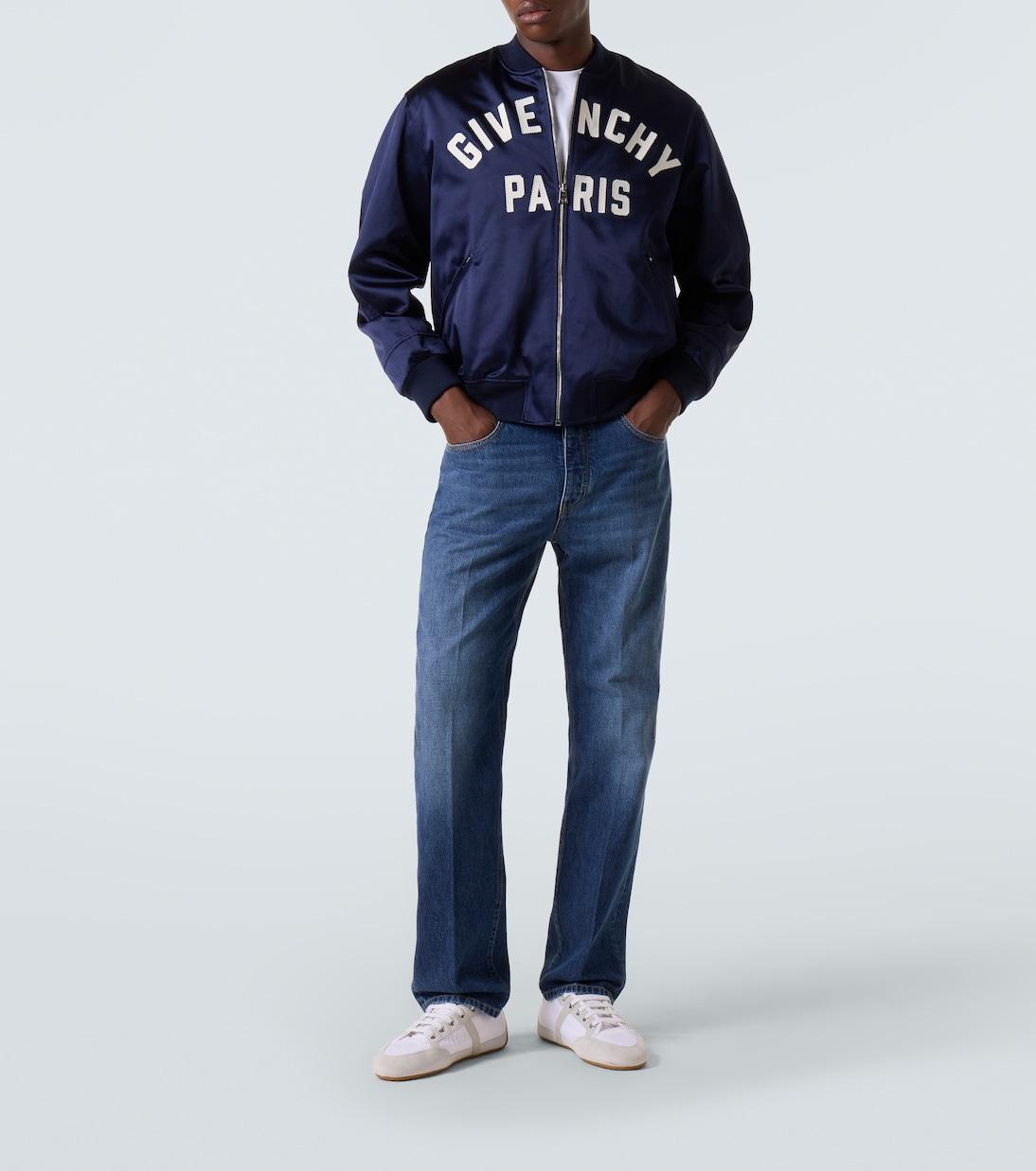 Блузон Givenchy Paris от Givenchy выполнен из блестящего атласа и привнесет непринужденный стиль в ваш повседневный образ. Застежка-молния, ребристые эластичные вставки и принт с логотипом спереди создают фирменный образ.