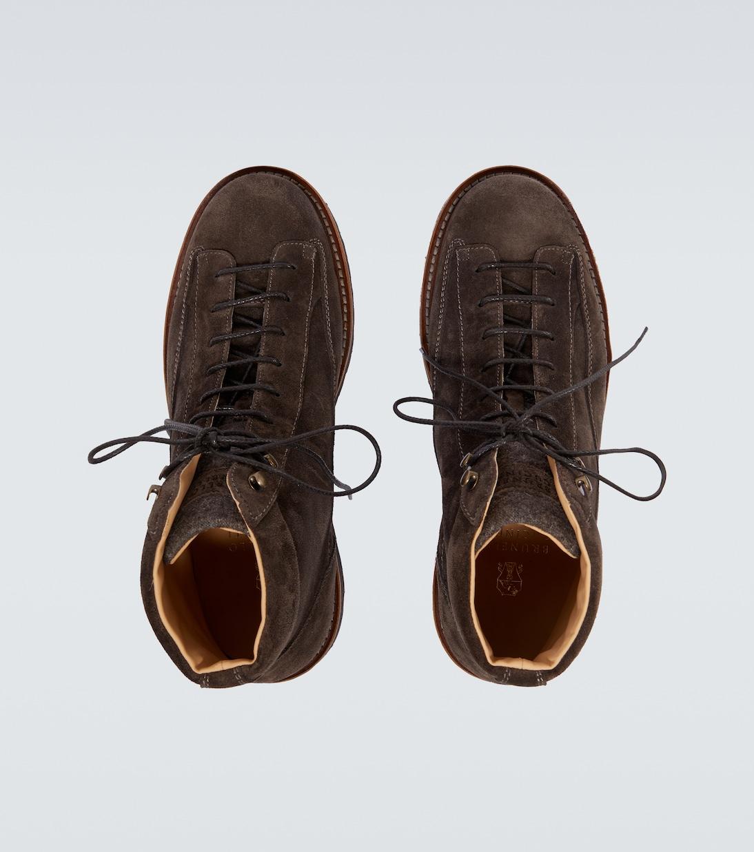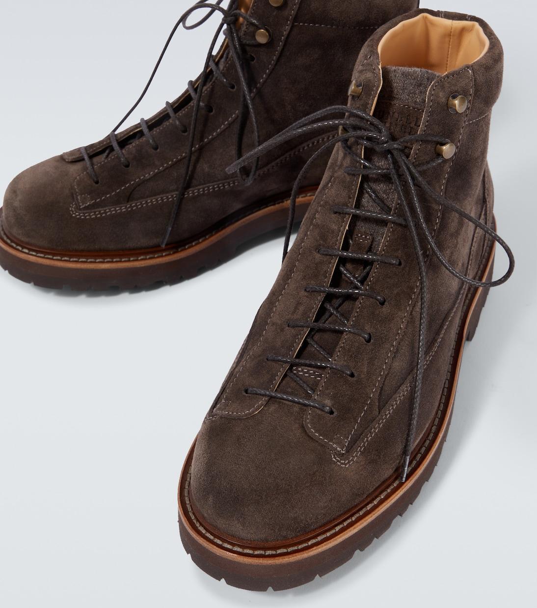 Эти ботильоны от Brunello Cucinelli сочетают в себе городской стиль, функциональность и комфорт. Изготовленные из бархатистой замши, эти ботинки дополнены твидовыми язычками из шёлка, шерсти и кашемира, что придаёт им современный вид.