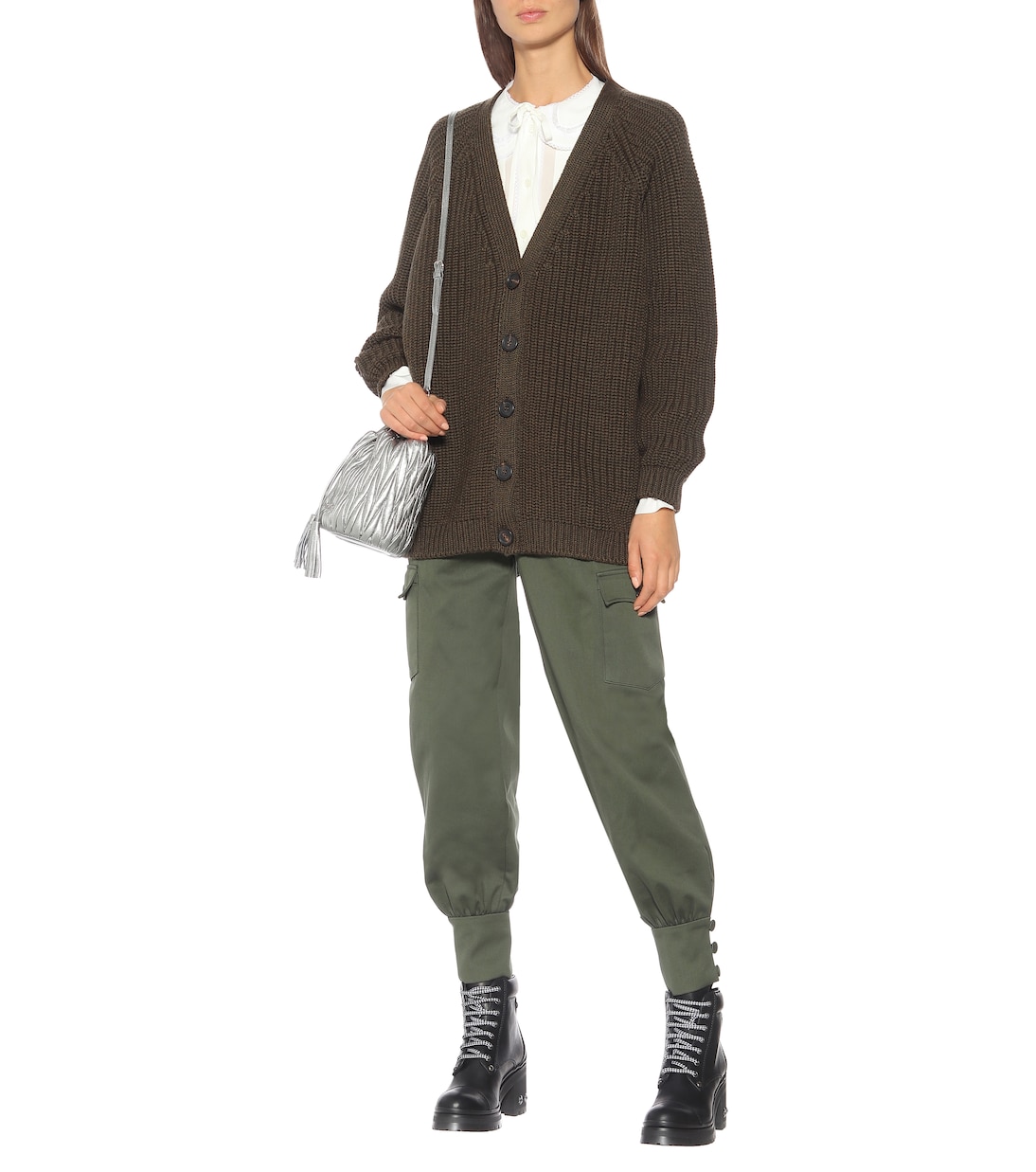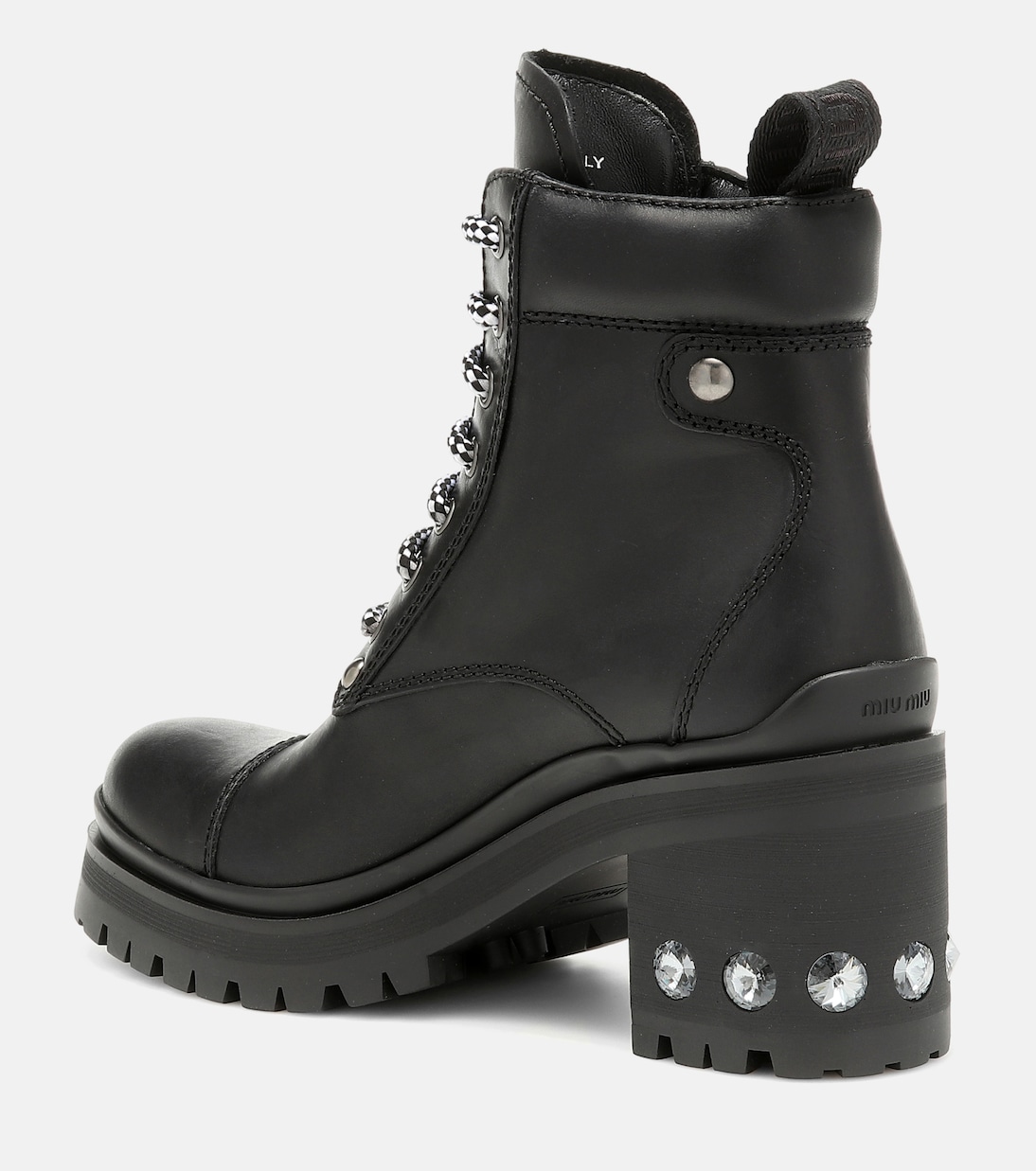 Эти ботильоны от Miu Miu просто созданы для того, чтобы выходить на сцену благодаря массивному каблуку и смелому дизайну. Изготовленные в Италии из гладкой чёрной кожи с чёрно-белыми шнурками, они дополнены петлёй сзади, серебристой металлической фурнитурой и фирменными крупными кристаллами бренда вокруг блочного каблука.