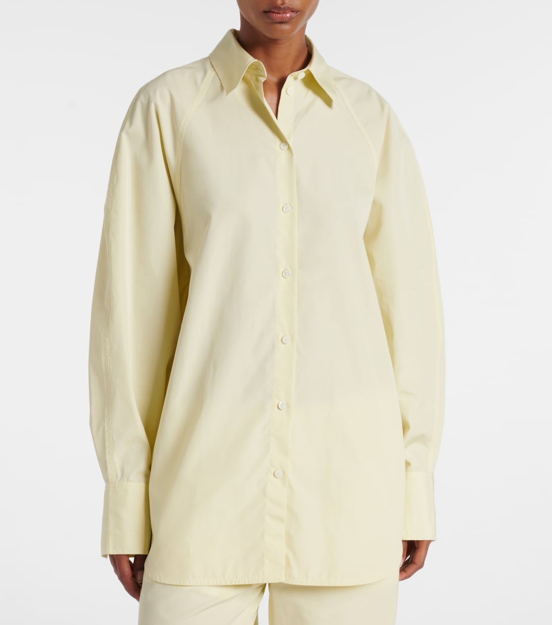 Определите свой дресс-код с помощью моделей от Toteme, стокгольмского бренда, специализирующегося на создании современной униформы. Эта рубашка свободного кроя из плотного хлопкового поплина с рукавами реглан и перламутровыми пуговицами.