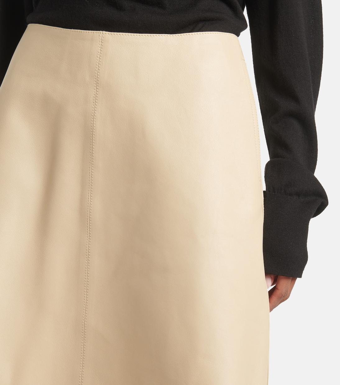 Определите свой дресс-код с помощью моделей от Toteme, стокгольмского бренда, специализирующегося на создании современной униформы. Эта юбка из гладкой кожи имеет выгодный А-силуэт и струящийся подол до колена.